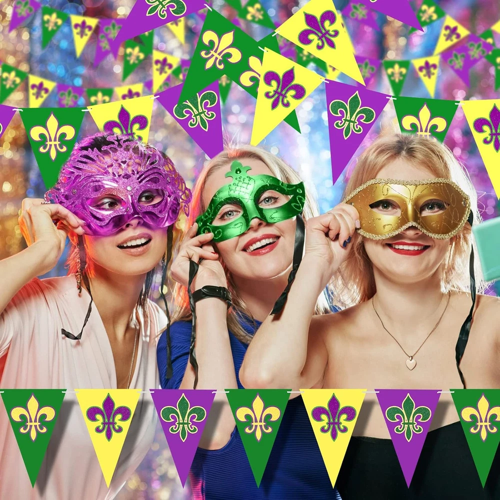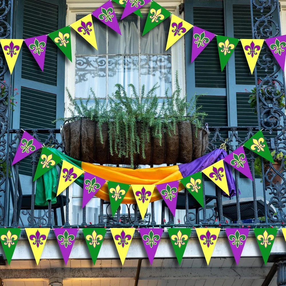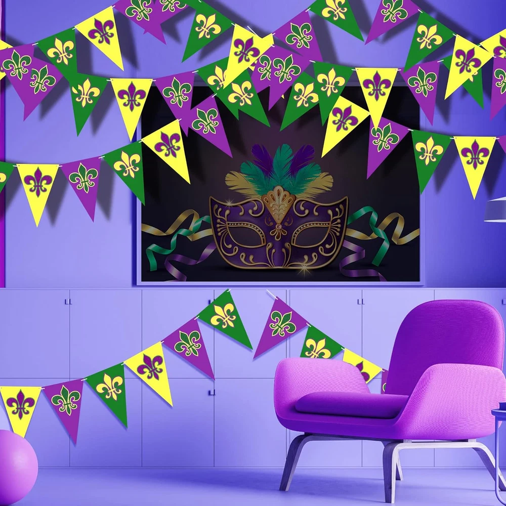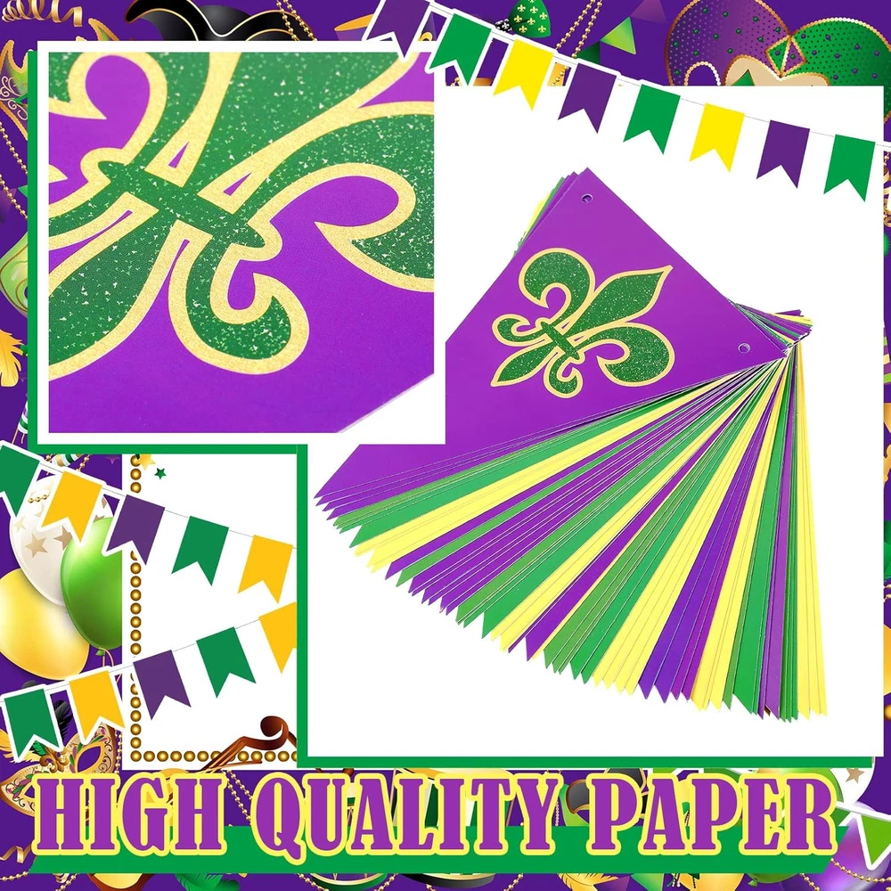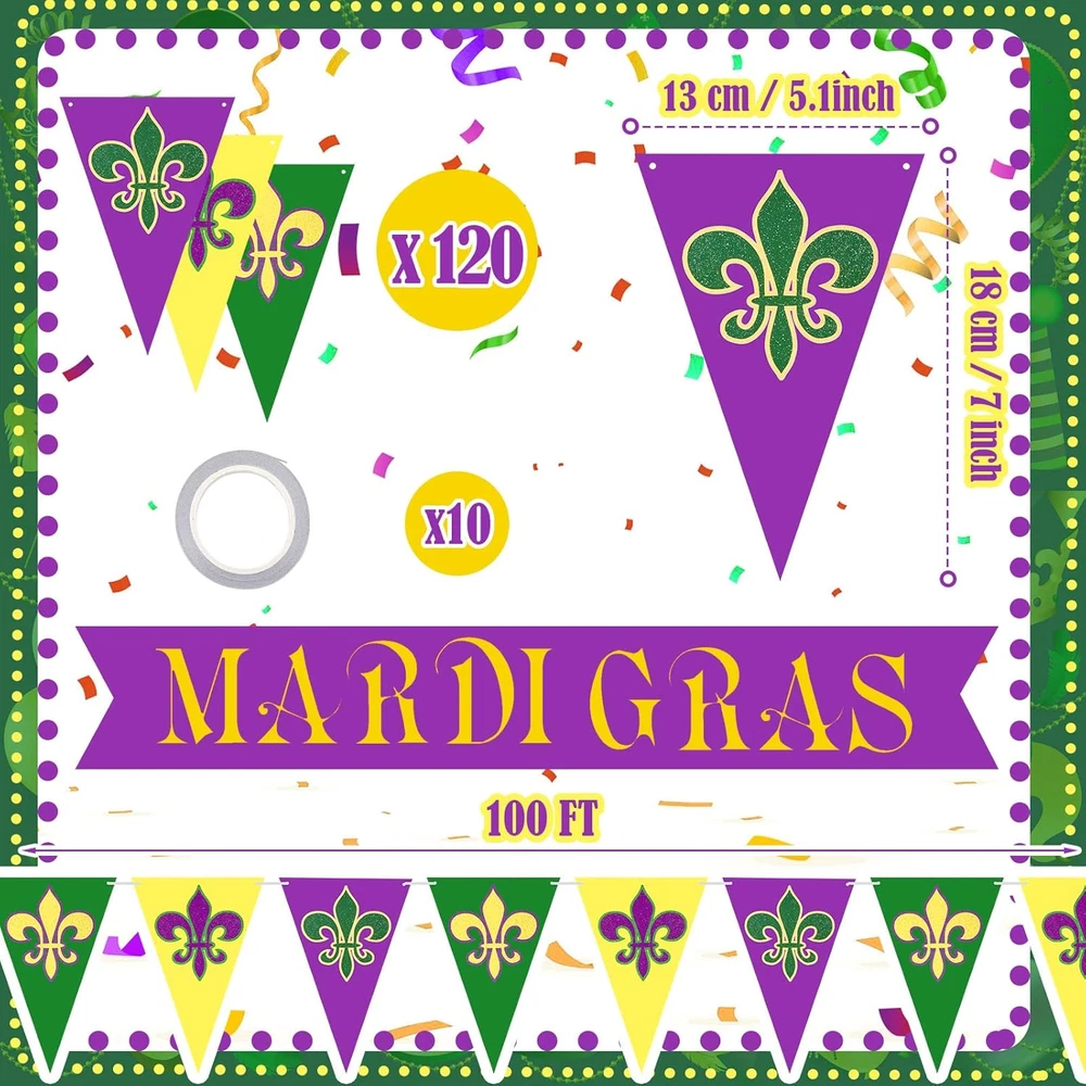 100Ft 120 Pcs Mardi Gras Decorations Mardi Gras Pennant Banner Yellow Green Purp