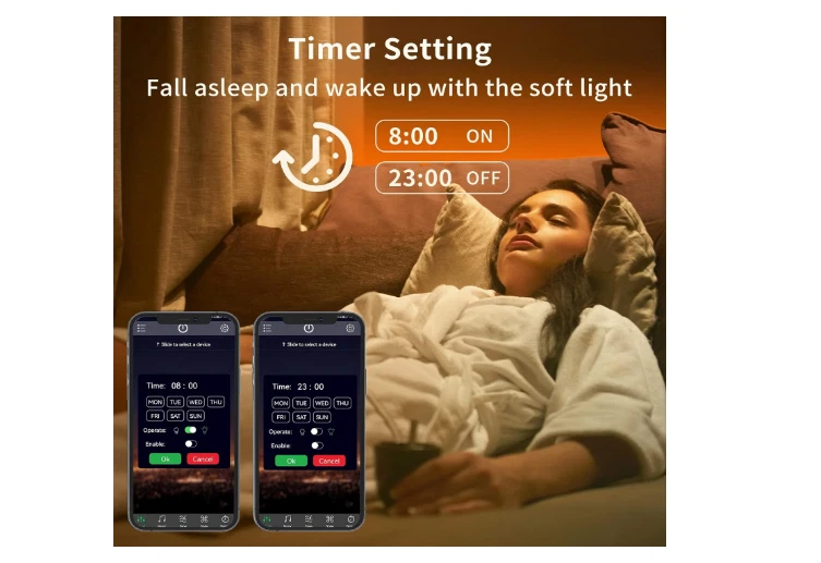 **100FT LED Strip Lights with APP & Remote Control** Transform your space with these versatile 100FT LED strip lights, perfect for adding vibrant, customizable lighting to any room or occasion. ### **Features:** - **APP & Remote Control**: Enjoy seamless control via Bluetooth or IR remote. Choose from 16 million colors, adjust brightness, and customize modes (Flashing, Jump, Fade) with varying speeds. - **Music Sync**: Built-in mic syncs the LED lights to ambient music, creating a dynamic party atmosphere effortlessly. - **Timing Setting**: Schedule the lights to turn on/off automatically at your preferred times for added convenience. - **Wide Applications**: Perfect for bedrooms, kitchens, ceilings, living rooms, and more. Ideal for holidays, parties, weddings, and celebrations like Christmas or Halloween. - **Easy Installation**: Simply peel off the adhesive backing and stick the lights to a clean, dry surface—setup is complete in minutes! Elevate your home decor and celebrations with these long-lasting, customizable LED strip lights!
