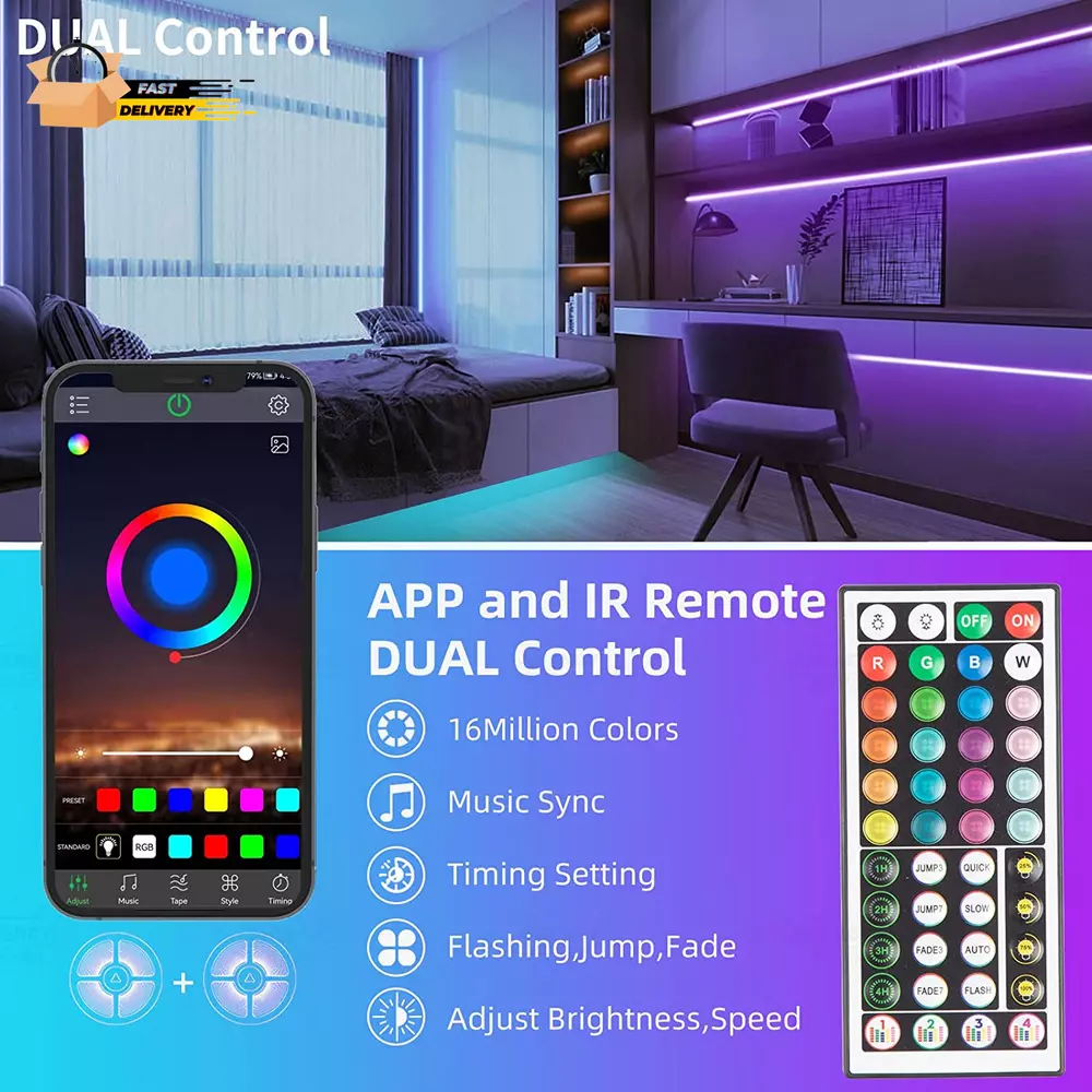 Store New Arrivals Add to Favorite View Feedback Contact 100Ft Led Strip Lights RGB Music Sync Color Changing,Bluetooth Led Lights with Smart App Control Remote,Led Lights for Bedroom Room Lighting Flexible Home Décor Description Light Source Type LED Item model number ST51_K2430 Style Modern Number of Items 5 Power Source Corded Electric Number of Light Sources 1 Control Method App Warranty Description 2 years. Theme Music Batteries Included? No Controller Type Remote Control Connectivity Protocol Bluetooth Wireless Communication Technology Bluetooth Material Vinyl Package Dimensions 9.41 x 8.11 x 0.71 inches Item Package Quantity 1 Indoor/Outdoor Usage Indoor Light Color Multicolor Batteries Required? No Item Weight 9.9 ounces Connectivity Technology Bluetooth Occasion Christmas Special Features Color Changing Special Feature Color Changing Part Number ST52_N12430US_LY Color Multicolor Voltage 24 Volts Included Components Adhesive tape Size 100FT APP and IR Remote Contorl: With a stable bluetooth connection,control your LED lights,freely change in 16 million colors,adjust brightness,customize modes (Flashing,Jump,Fade,etc) in different speeds. Music Sync: The built-in mic make the LED lights color-changing with the ambient music,easily create party atmosphere. Timing Setting: The Led strip will turn on/off automatically at the setting time, repeat this seting on date you set. Widely use: The led strip lights 100FT is long enough, perfect for decorating your bedroom, kitchen, ceiling, living room . Widely used on holidays and party (such as christmas, halloween,birthday,wedding .etc ) Easily Setup: Tear off strong adhesive tape on light strips,stick the strip lights on a clean,dry surface,finish in minutes. Product Description Come on,Light up with KSIPZE! Easily transforming different atmosphere for same space. Do whatever you want in minutes:Candlelight,Romantic,Dating,Movie,Festival and Party. Usually used in bedroom,living room, kitchen,mirror,bar,book store,etc. What you get: LED strip lights Remote Adapter Control box User manual Smart APP LED Strip Lights - Easy Install in Minutes:Tear off and stick the strip lights on a clean,dry surface - DUAL Control: Both APP and IR Remote,Use Conveniently - Freely change in 16 million colors,adjust brightness - Flashing,Jump or Fade in different speeds - Music Sync: The built-in mic make the LED lights color-changing with the ambient music - Timing Setting: Set to turn on/off at specified time, and repeat this seting on date you set Customize Your Lighting, Decorate your life! Music Sync The built-in mic make the LED lights color-changing with the ambient music,easily create party atmosphere. Timing Setting The Led strip will turn on/off automatically at the setting time, repeat this seting on date you set. 16 Million Colors Not only equipped with light colors like RGB (Red, green, blue), white and other 16 colors, but also 16 millions colors provide endless decor options. Multi Scenes ABOUT US We offer the best prices around on high quality products. Our E-store includes media such as books, movies, music and games while offering electronics, toys, sporting apparel, clothing, tools, general home, garden items and more. SHIPPING We are always working hard to ensure your package arrives as soon as possible. Please understand that some factors like weather, high postal traffic, and the performance of shipping companies are outside of our control. We offer free shipping to the lower 48 states and ship within 2 business days of payment, usually sooner. We do not accept P.O. Boxes. Please provide a physical address. For shipping outside of the continental USA, we only use eBay's Global Shipping Program.The item is shipped to KY and then sent to the rest of the world. International customers are responsible for all duties and taxes. Continue to check out in order to calculate costs for shipping the item to your country. Messages regarding eBay's Global Shipping Program MUST be directed at eBay EXCLUSIVELY. RETURNS We offer a 30-Day Return Policy on items which you are not completely satisfied with. You have the option for a full-refund or an exchange of the item. No returns are available on items shipped outside of the USA. PAYMENT We accept PayPal. CONTACT US This page content is yet to come Please ad us to your favorite seller and visit again later Thank You CUSTOMER SATISFACTION We try our very best to make sure every customer is completely satisfied. If there's a problem, message us! We're happy to help. WE ACCEPT Copyright © 2021 AutoDS. | All Rights Reserved