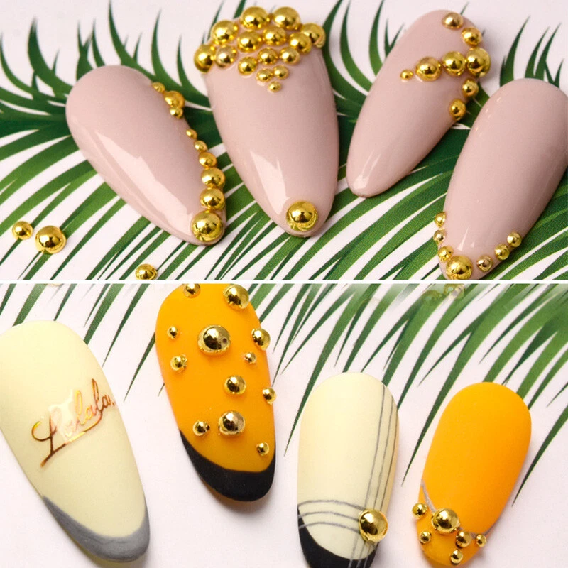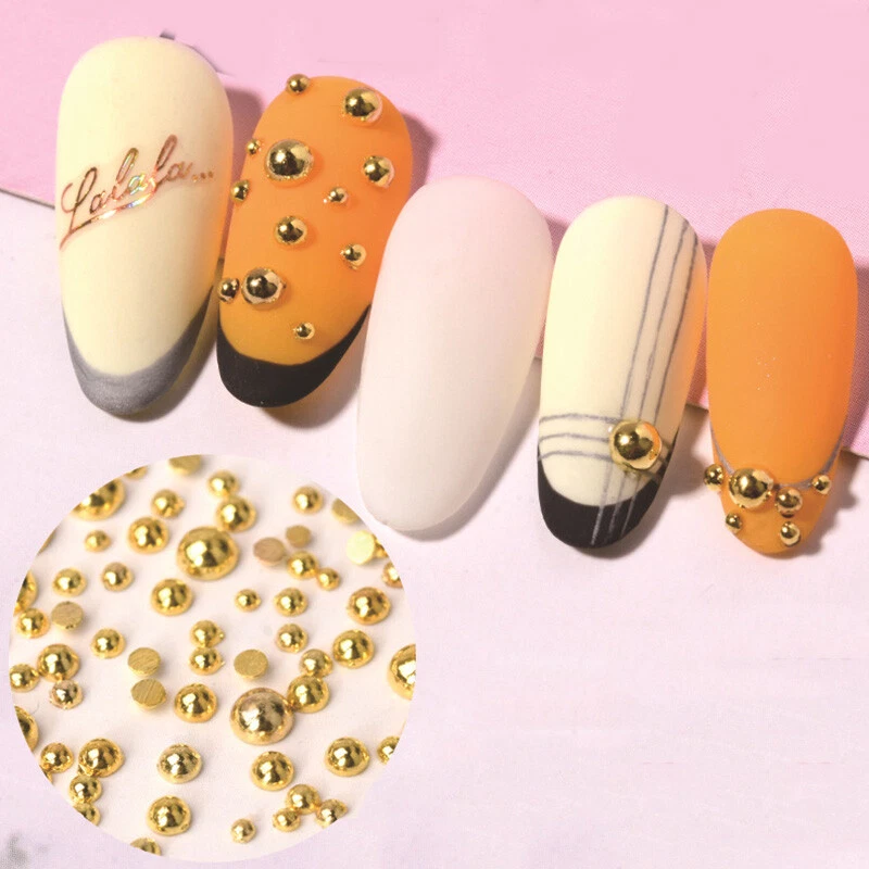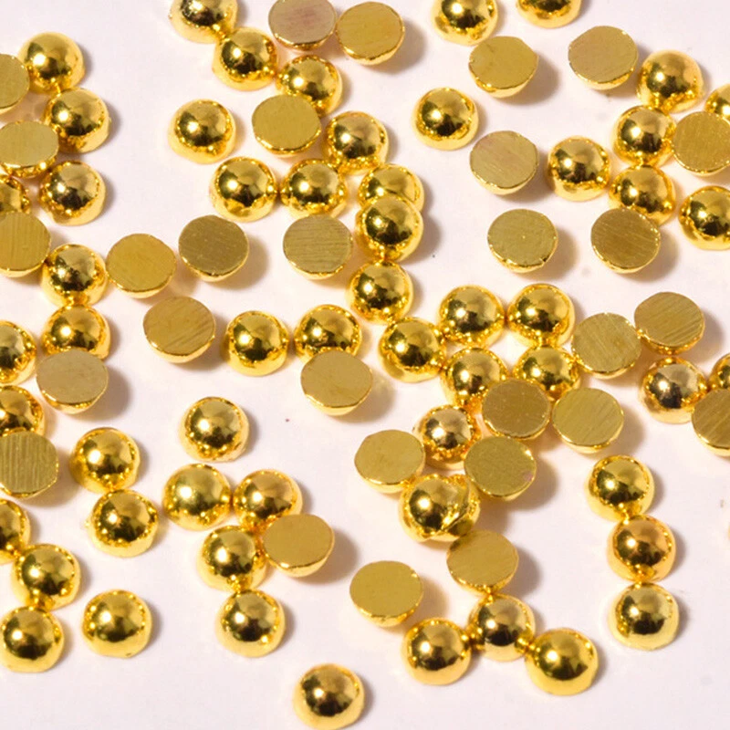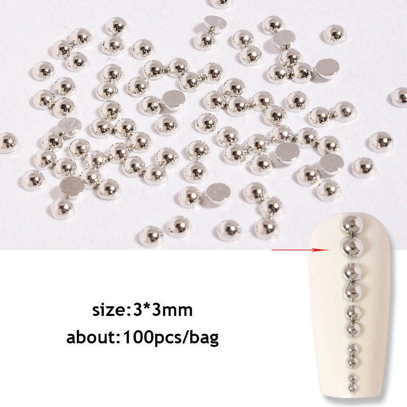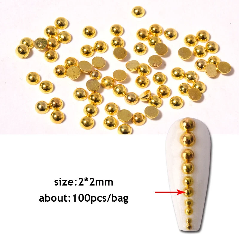Color: Gold,Silver Shape:Semicircle Quantity:100pcs/bag Size:1mm,2mm,3mm Type: Nail Art DIY Charms Decorations Usage: Nails, Bags, Shoes, Cell Phone, Box, ect. Package: 1 bag 100pcs Metallic Beads Nail Art Decorations