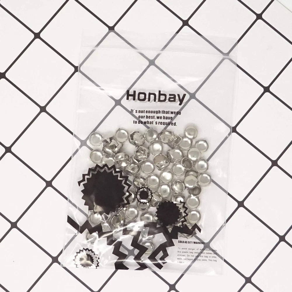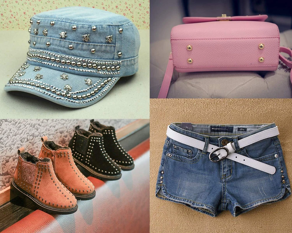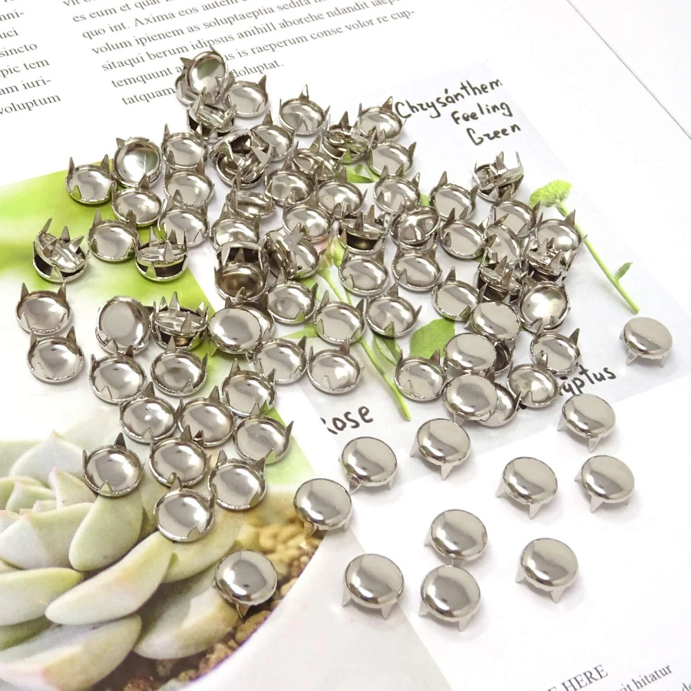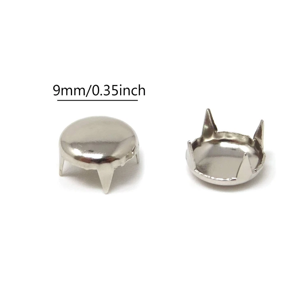 Enough quantity for your DIY handicraft like clothes, shoes, bags and other accessories Warm note: 1. manual weighing and counting, please allow error within the scope of 5pcs 2. If the leather you want DIY is so thick that the claw on the rivet can not penetrate directly, you can use these awl to make holes first,then install the rivets to avoid damaging your clothes 3. Small size, keep out of reach of under 3, avoid swallowing Package includes: 100pcs round punk rivets diy dome metal studs Size: 9mm/0.35inch, Material: copper, durable and sturdy Easy to install, push the stud into the material, and fold the 4 prongs over on the back-side Widely used in purse, handbag, backpack, jeans, jacket, clothes, belt, collars, shoes, hats, etc. Let your imagination run wild Warm note: 1. manual weighing and counting, please allow error within the scope of 5pcs; 2. If the leather you want DIY is so thick that the claw on the rivet can not penetrate directly, you can use these awl to make holes first,then install the rivets to avoid damaging your clothes; 3. Small size, keep out of reach of under 3, avoid swallowing