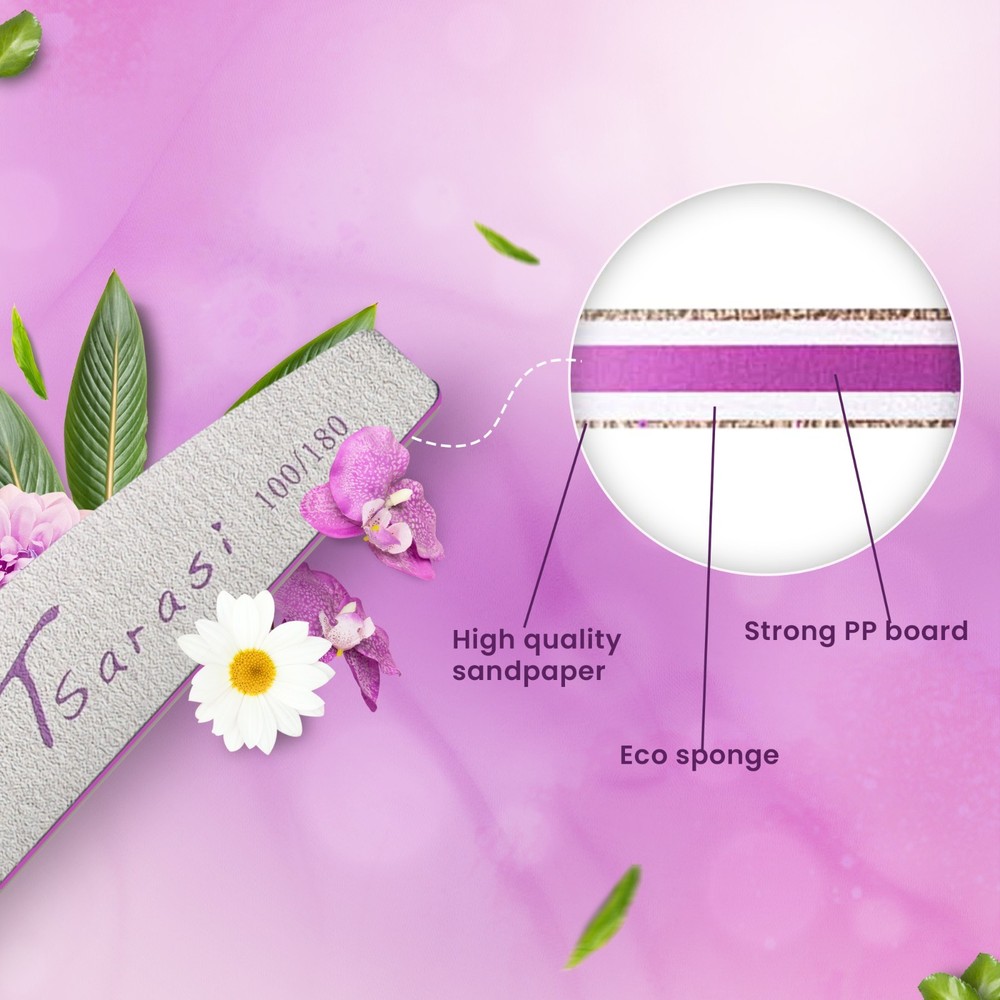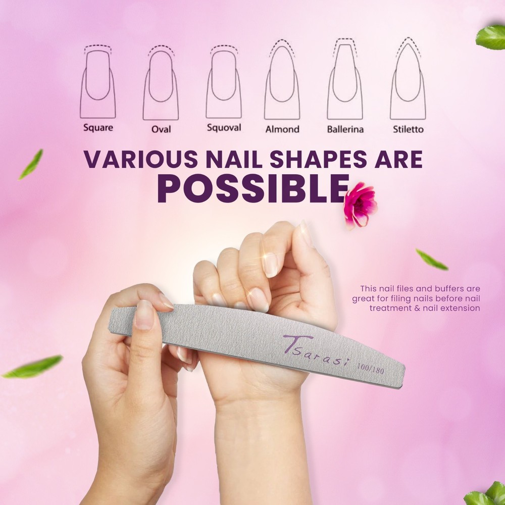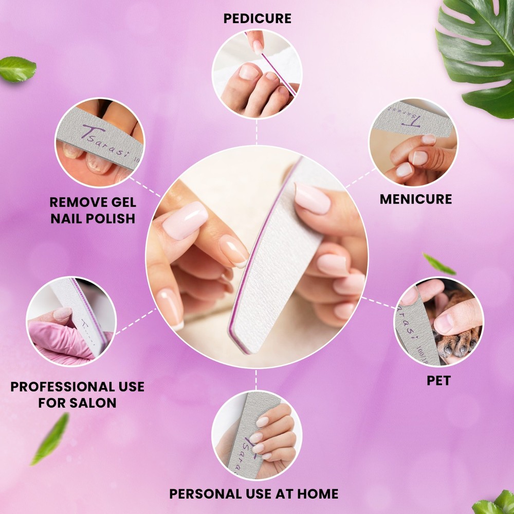 💅 Tsarasi 100PCS Nail Files 100/180 Grit – Double-Sided Emery Boards Achieve salon-quality nail care at home or professionally with the Tsarasi 100PCS Double-Sided Nail File Set . Designed for durability and precision, these emery boards are perfect for shaping, smoothing, and maintaining both natural and artificial nails. ✨ Key Features 💎 Professional 100/180 Grit Design Dual-sided nail files: 100 grit for shaping acrylic, gel, or artificial nails 180 grit for smoothing and refining natural nails 🧰 Bulk Value Pack (100PCS) Large quantity ensures long-lasting use—perfect for nail technicians, salons, or personal use at home. 💪 Durable & Long-Lasting Made with high-quality materials designed to maintain performance through multiple uses. 🔁 Versatile Nail Care Tool Suitable for: Acrylic nails Gel nails Natural nails Manicure & pedicure use 🏠 Perfect for Home & Salon Use Lightweight and easy to handle, ideal for professionals and beginners alike. 📦 Product Details Brand: Tsarasi Quantity: 100 Pieces Grit Type: 100/180 Double-Sided Material: Emery Board Use: Nail shaping, smoothing, and buffing 📖 Directions for Use Select the appropriate grit (100 for shaping, 180 for smoothing) Hold file at an angle to the nail Gently file in one direction Repeat until desired shape is achieved Clean file after use ⚠️ Safety Note For external use only. Use gently to avoid nail damage. Keep out of reach of children. nail files 100 180 grit, emery boards bulk, nail buffer, acrylic nail file, manicure tools, pedicure tools, professional nail supplies, nail filing tools, double sided nail file