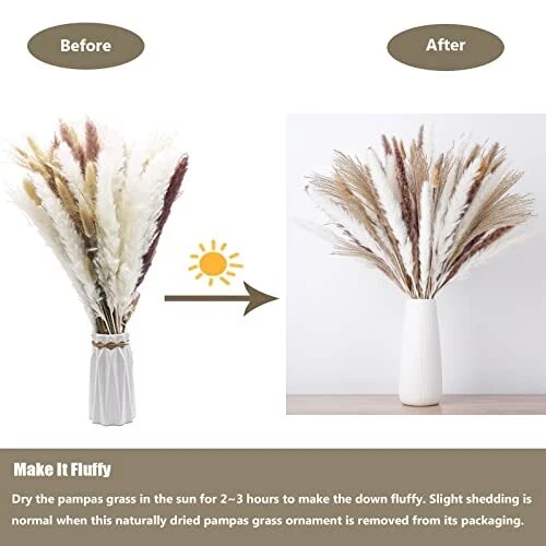 30 Days Return Policy Fast Delivery Trusted seller 100PCS Natural Dried Pampas Grass Bouquet, Dried Flowers for Boho Home Decor, Wedding, Baby Shower Decorations, Farmhouse Fall Decor Table Decor Product Description 【??? Fall Decor, Pampas Grass Decor, Home Decor, Fall Decor, Farmhouse Decor, Bedroom Decor, Office Decor, Wedding Decor, Living Room Decor, Boho Decor, Modern Style Decor 】 【100-IN-1 PACKAGE】18"/45cm fake flowers Natural pampas grass, including 15 white pampas grass, 15 primary color pampas grass, 50 rabbit tails grass and 20 dried reed. (Not include the vase). 【Ideal Winter Decor Spring Decor】- The IUGOBI fake flowers Spring Decor for Home Boho Flowers is perfect for creating a cozy and welcoming atmosp in your home during the all season. 【Premium Quality and Safe】- The Pampas Grass Bouquet artificial flowers is made from 100% natural high-quality reed grass, which is eco-friendly. You can enjoy the original touch of nature in your home without any worries. 【Flexible DIY Bouquet Arrangements】- Let your creativity go wild and design your own unique bouquets with the 18"/45cm long natural pampas grass artificial flowers in 4 different colors and textures. You can use them for centerpieces, table decorations, or floral arrangements. 【Easy Fluffing with Sun and Hairspray】- The pampas grass bouquet might be slightly compressed during transportation. No worries! Just put it under the sun for a few hours, and it will regain its fluffiness and softness. You can also spray it with hairspray lightly to hold fluffiness and reduce shedding. 【Suitable for any vases】The dried pampas grass with a total length of 18in. You also can shorten the length of the pampas grass bouquet to adapt to your vase. Let you enjoy the fun of DIY and feel the real natural atmosp. 【Boho Bouquet and Gift Box Package】 A exquisite Boho bouquet artificial flowers, artfully crafted from natural pampas grass, serves as the perfect adornment to warm your home. Our carefully designed gift box, with its delicate printing, ensures the safety of your bouquet during transportation, while adding a touch of elegance to your gift-giving experience. Shipping Returns Payment Shipping Shipping is FREE to all addresses other than APO/PO boxes in the lower 48 states. All our stock ships from US-based warehouses. Shipped via USPS or UPS (depending on location and package weight) Unless stated otherwise, all orders will ship within 24-72 hours of your payment being processed. Check our feedback to see the great reviews of FAST shipping we offer. Returns As our valued customer, we will do our best to make sure the product you receive arrives to you on time and as expected. If you are not satisfied with your purchase, please contact us within 30 days of receiving your order to process a return. Payment We currently accept payment via eBay managed payments only. Once payment is cleared, we will dispatch your shipment within 1-3 business days. Please refer to the "Shipping" tab for more information regarding shipping speed to your destination.
