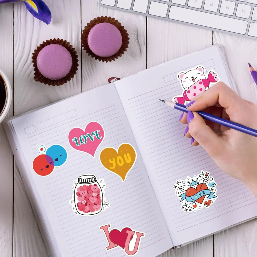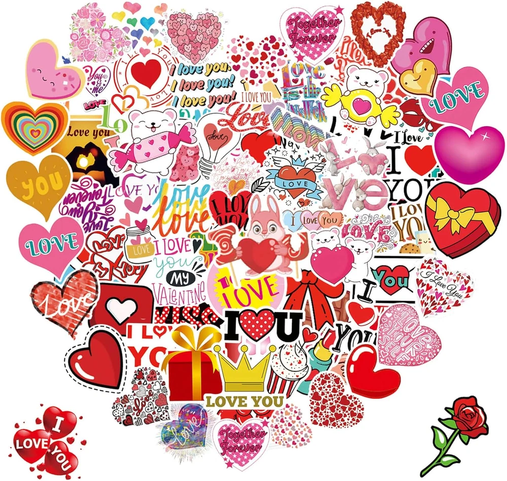 100PCS Waterproof Valentine's Day Vinyl Stickers for Gifts and Decor