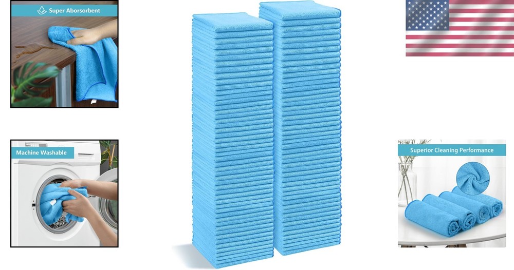 100-Pack Super Absorbent Microfiber Cleaning Cloths for All Cleaning Tasks