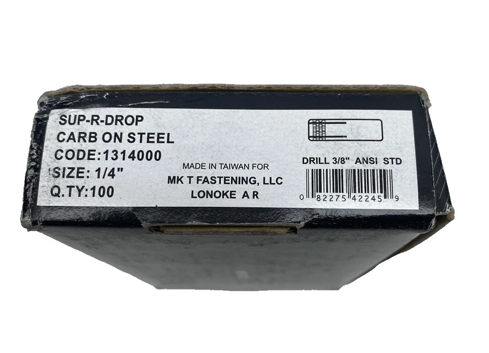 Box Of 100, MKT Fastening Sup-R-Drop, Drop In Anchor 1/4” 1314000 Carbon Steel 👀 NEW - OLD STOCK INVENTORY - AS PICTURED - IN ORIGINAL PACKAGING Item comes as shown and only includes what is shown in the photos Some items may have slight cosmetic wear which is noted in the condition of the part and can be seen in the pictures All reasonable Best Offers will be considered! Fast and FREE Shipping to the Lower 48 States in the USA- (Additional Charges May Be Required To Ship To Alaska, Hawaii or Puerto Rico, or Other US Territories) Please Contact Seller for a Shipping Quote 1 Day Handling on 99% of Shipments 30 Day Return Policy Se Habla Español Fully Guaranteed Customer Satisfaction is our goal . If you are unsatisfied please notify us so we can make this transaction 100% to your satisfaction. Thank you for looking and have a great Day! * * All Items are purchased in Surplus Auction's or Unclaimed Freight.**