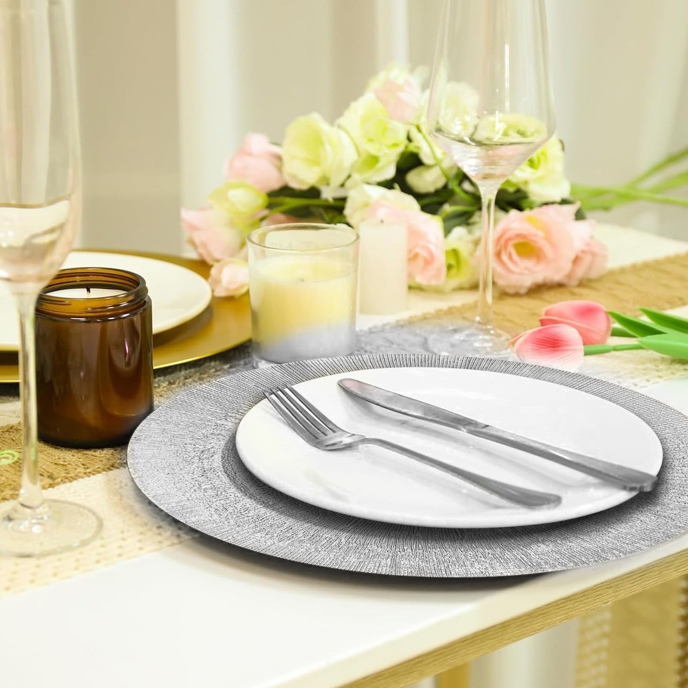 $ 13.2100x Silver 13" Round With Embossed Rim Charger Plates Wedding Dinner Light USA