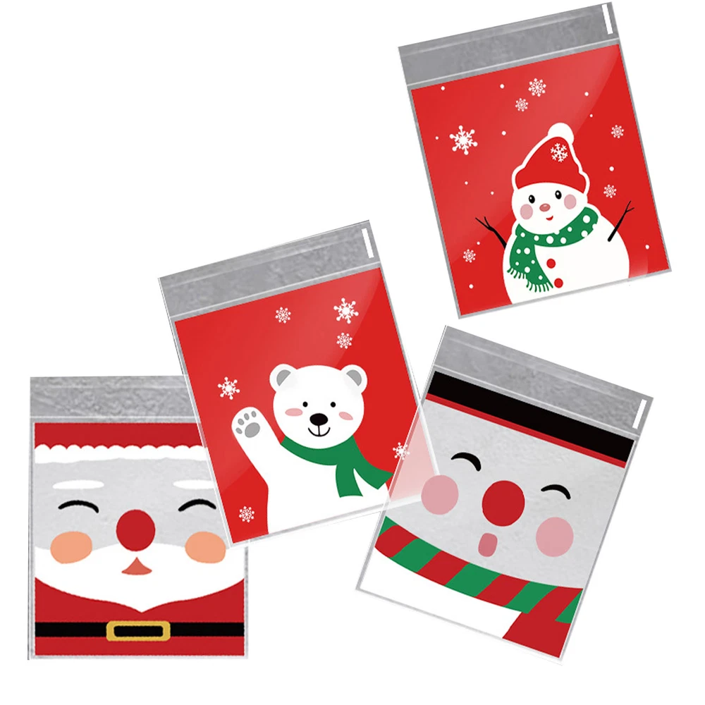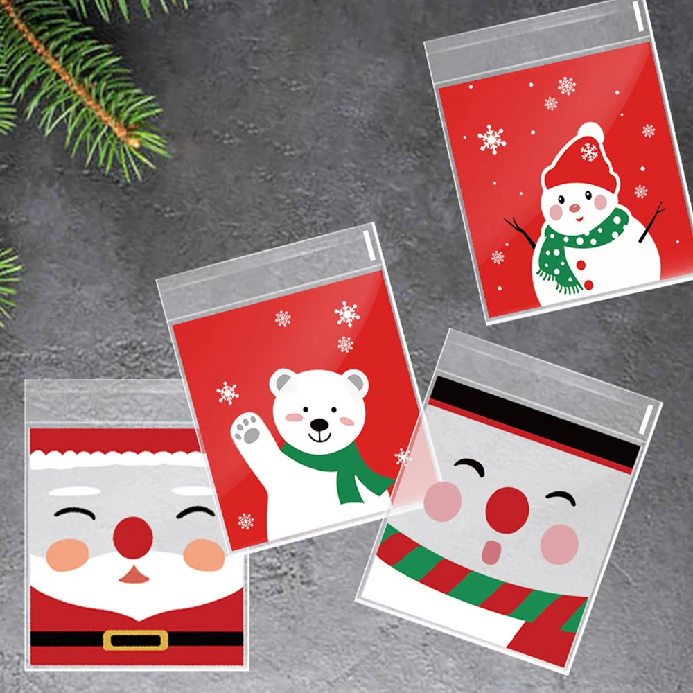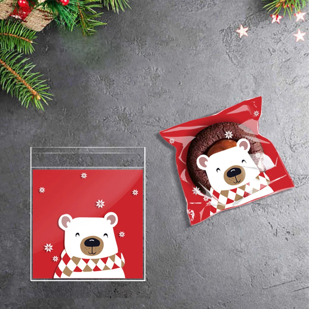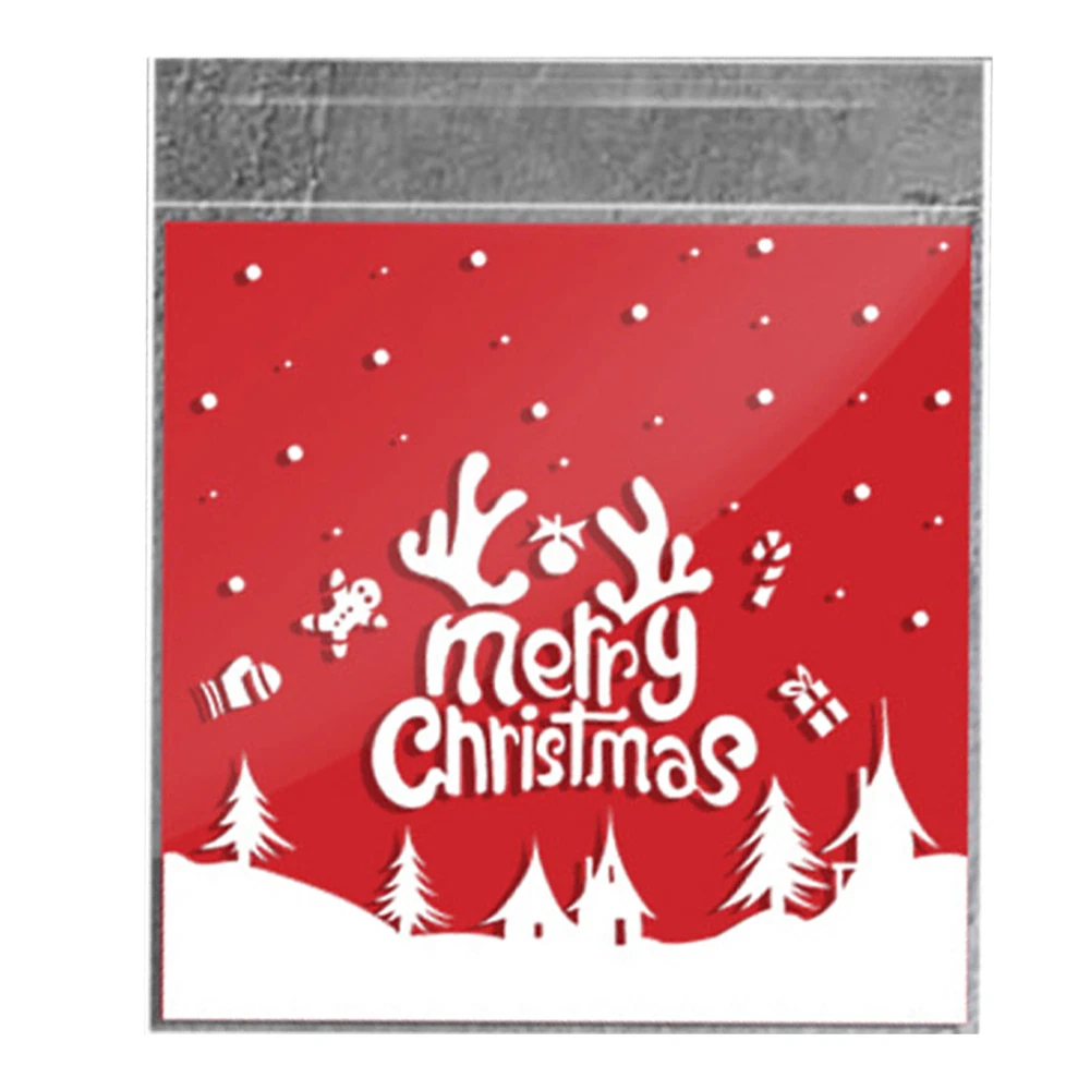 100Pcs Christmas Sweet Candy Cookie Biscuit Treat Seal Bags Self Adhesive Pouch