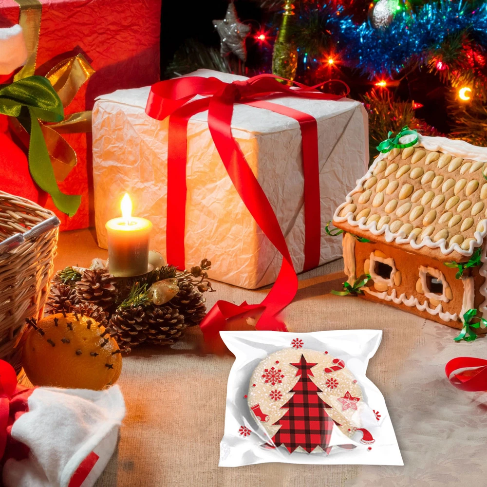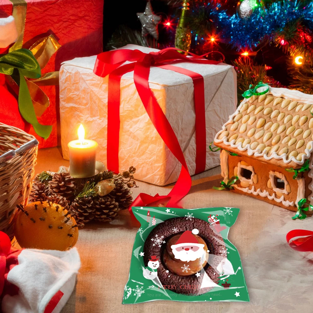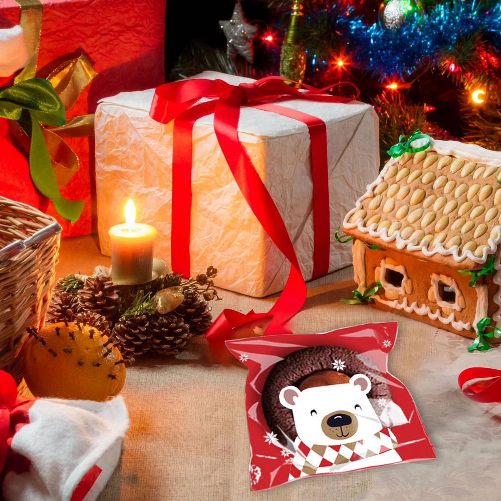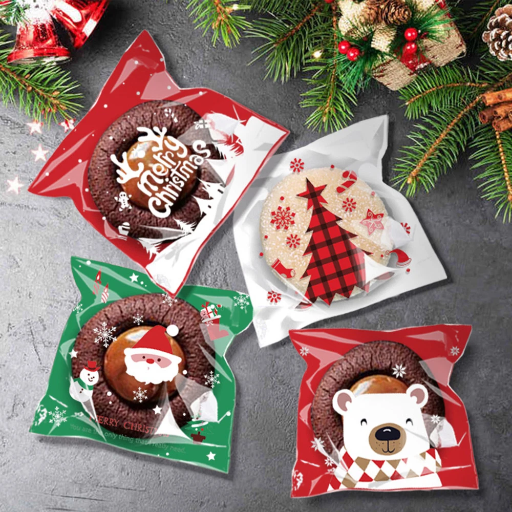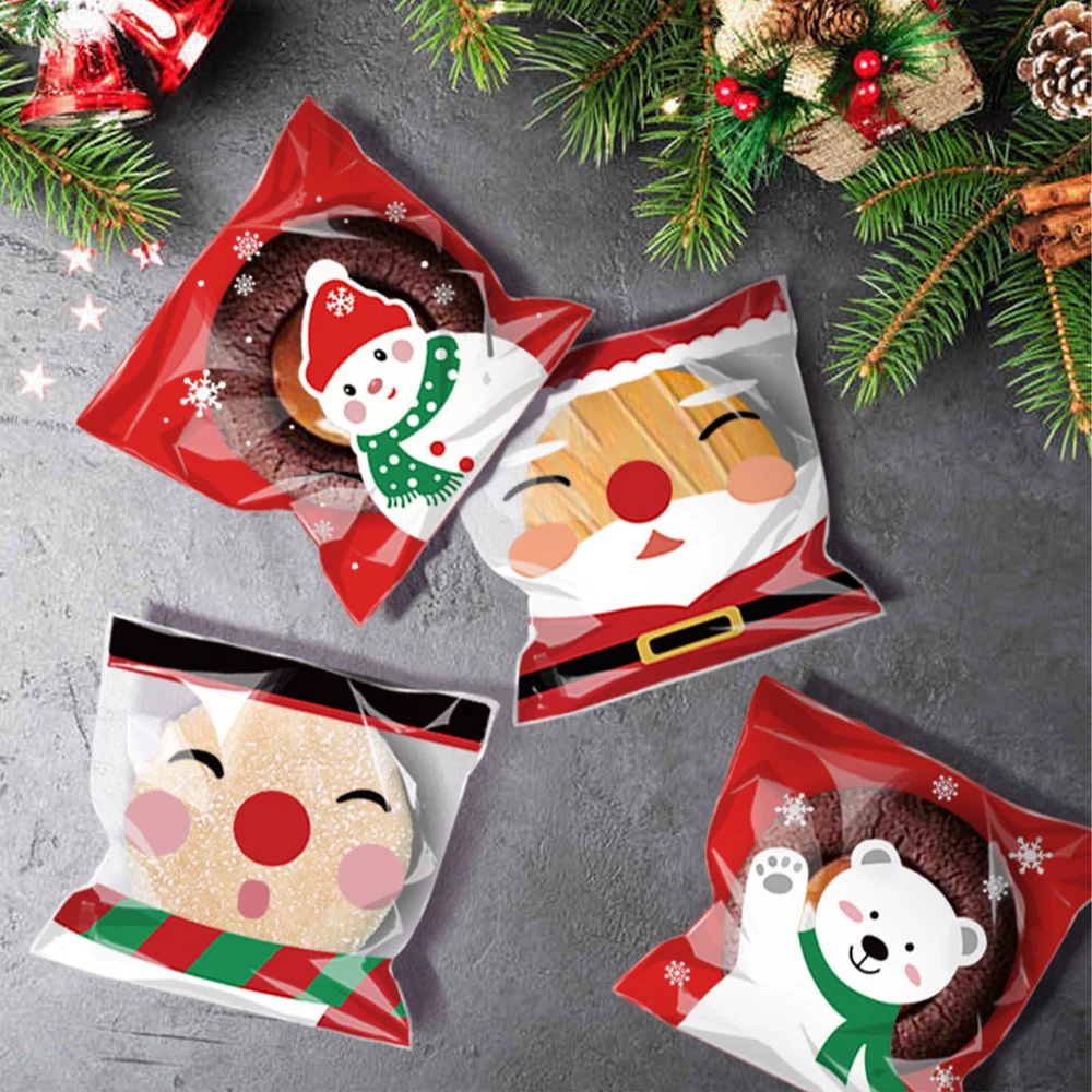 100Pcs Christmas Sweet Candy Cookie Biscuit Treat Seal Bags Self Adhesive Pouch
