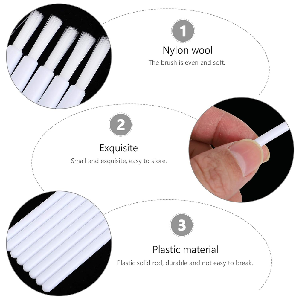 Very useful and practical tool that can help us apply lip gloss and lipstick evenly. You will receive 100 disposable lip , which you can use by yourself or share with others. The lip gloss applicator comes with a soft brush head, which is safe for our lips. Made of materials, , practical and safe. These versatile makeup are suitable for both beginners and professional makeup artists. Description These are a set of lipstick . It is an indispensable tool of cosmetics. Comfortable to use and make your lips well protected. Lightweight and durable, ergonomic handle is comfortable to use. suitable for traveling use. Features - Color: White - Material: Plastic+nylon wool - Size: About 9.00X0.30X0.30cm Package Including 100 x brush