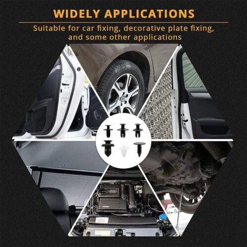Placement on Vehicle: Front, Left, Lower, Rear, Right, Upper Brand: Unbranded Color: Black+White Compatibility: Universal for Toyota,Honda,GM,Ford etc. Universal Fitment: Yes Type: retainer clips fasteners Manufacturer Part Number: 100 Pcs Automotive Push Type Retainer Kit Type 1: Screw Type Clip Retainer Rivet Feature 1: Bumper Clips Bumper Clip OE/OEM Part Number: Does not apply Features: door panel clips, door panel clips,, door panel retainer fastener, Bumper clip, Retainer Fastener, car door hood Quantity: 100Pcs/set +4 Fastener Removers Package: 100pcs Clips,1 Plastic Box,4 Fastener Removers +6 in Screwdriver Finish: Plastic Material: Nylon Clips, Plastic Box Superseded Part Number: Universal For Auto Car SUV Off-Road Pickup Truck Compatibility 1: Universal for Toyota,Honda,GM,Ford etc. gtin13: Does not apply Interchange Part Number: Under Engine Splash Guard Rivet Fastener Clips UPC: Does not apply Manufacturer Warranty: Lifetime Other Part: Push Pin Clip Assortments Fit