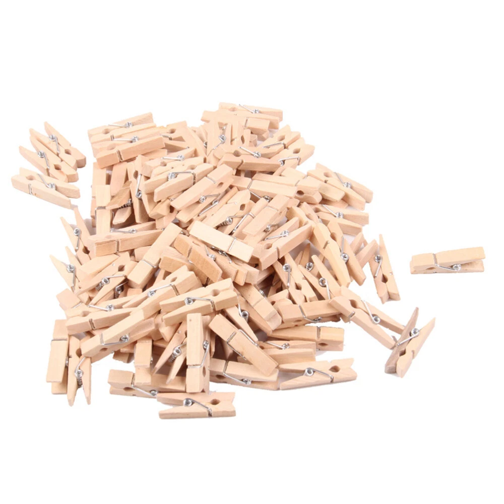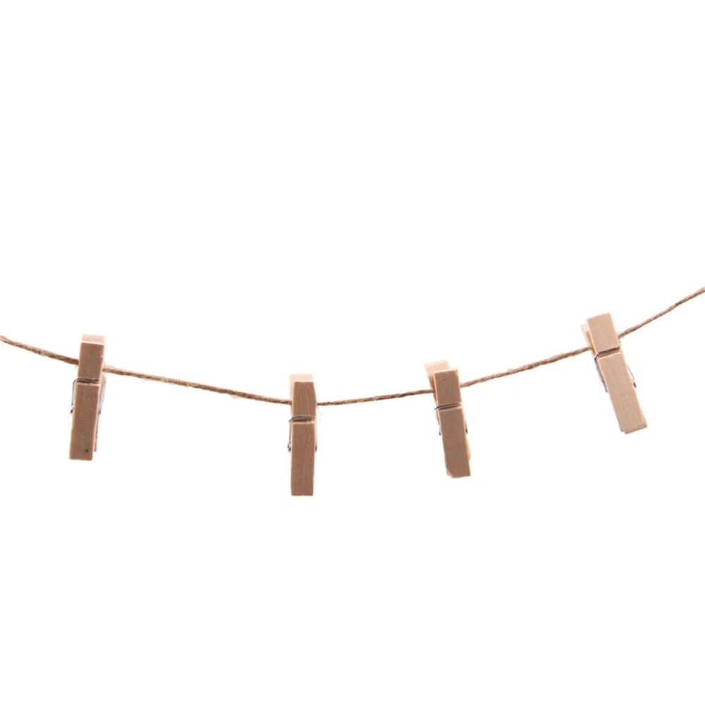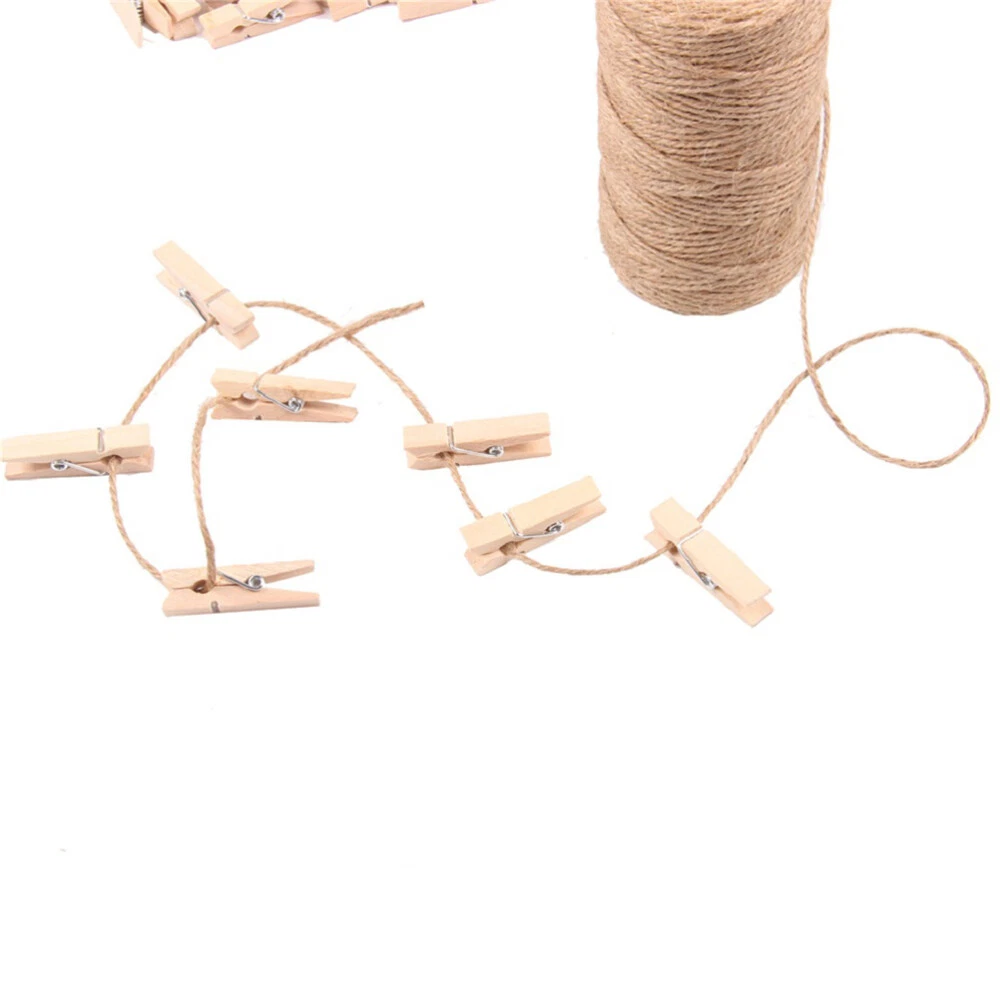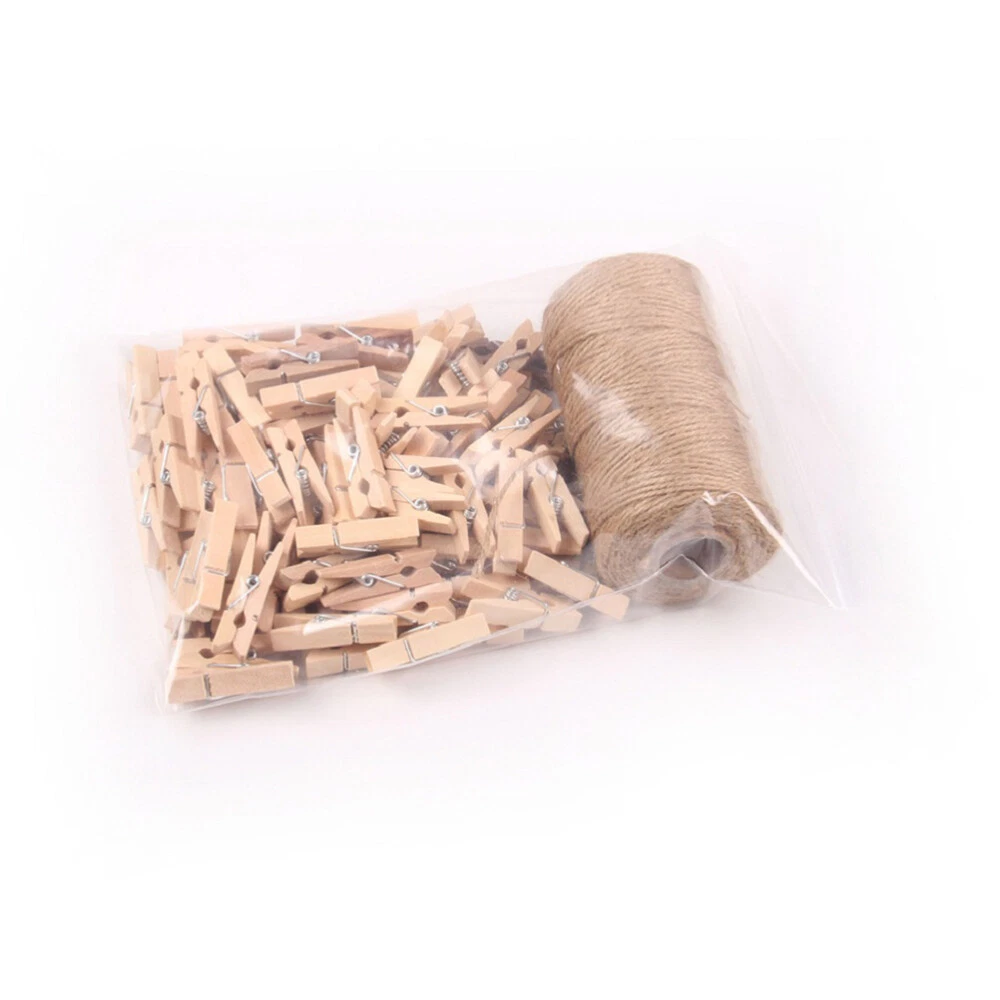100Pcs Mini Wooden Clothespins Pegs Photo Clips with Jute Twine for Crafts