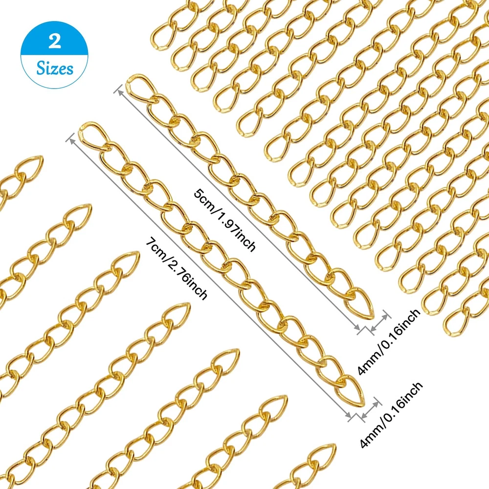 Wide Application: This chain extender set is a must have for every jewelry cabinet,perfect for DIY jewelry making,necklaces or bracelets, fit for expanding the length of necklaces, bracelets or anklets,you can choose the appropriate length according to your neck, wrist, ankle. Note: Do not wear the jewelry extender when exercising, bathing, swimming or doing heavy work, so as not to hit or tear. Specifications: Quantity: 100Pcs Material: stainless steel Size: 5cm*4mm,7cm*4mm Color: gold Package included: 100xChain Extender Package Includes:comes with 100Pcs chain extension tails in two sizes,they are 5cmx4mm,7cmx4mm,50Pcs in each size,different lengths meet different needs,great for your DIY jewelry making necklaces Bracelet,Anklets,key chain,etc. Wide application: These extension chain are fit for expanding the length of necklaces,bracelets key chain or anklets,etc,good for hanging charms, stones,even can make dangle earrings,you can choose the different size to meet your jewelry need. Durable Material:Stainless steel extenders chain are solid and durable.made of zinc alloy which is lead and nickel free,different size meet your different needs for your craft projects. Note:Chain Extender come in two size,Warm notice: do not wear the jewelry extender when exercising, bathing, swimming or doing heavy work, so as not to hit or tear. We Promise:Everything we do is to get the satisfaction of our customers,We know it's hard,but we'll keep trying to do it.if you have any questions about Bracelet Necklace Chain Extender,please feel free to contact us,you would get a satisfactory service.