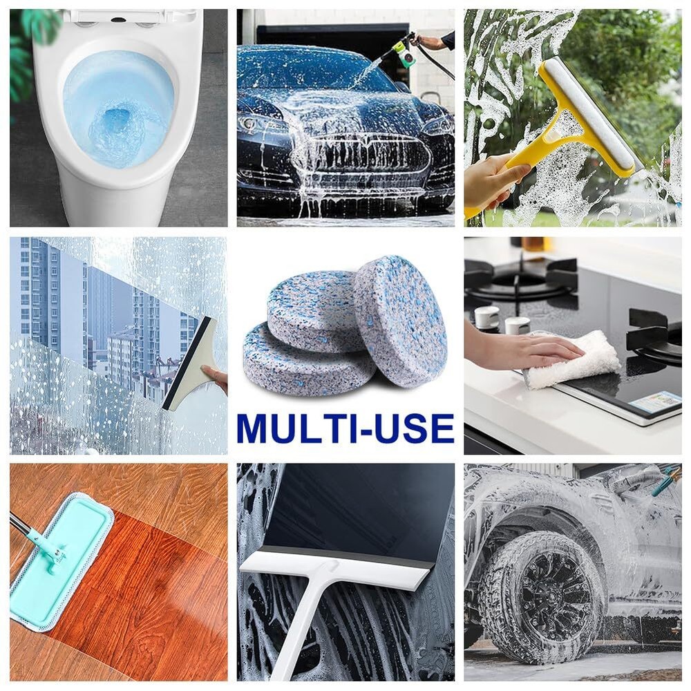 Car Windshield Washer Tablets 100 PCS Washer Fluid Tablets Glass Cleaner Wiper Features: Powerful Cleaning Performance: Car Windshield Washer Tablet Are Formulated With Advanced Cleaning Agents That Effortlessly Cut Through Dirt, Grime, A Clean And Clear Window For Safe Driving. The Formula Is Designed To Reduce The Friction Between The Wiper Blade And Glass, Softening The Wiper And Reducing Noise. Cost-Effective & Space-Saving: One tablet can make one gallon of windshield washer fluid or 16 fl oz of cleaner spray, offering a cost-effective and space-saving alternative to bulky pre-mixed fluids. Keep your garage clutter-free and save money in the long run.(1 tablet+ 1 gallon water= 1 gallon windshield washer fluid.) Easy to Use: Simply drop one of Washer Fluid Tablets into your vehicle's washer fluid reservoir and add water. The tablet will dissolve quickly, creating a powerful cleaning solution that's ready to use in minutes. All-Season Performance: windshield washer tablets are designed to provide optimal cleaning performance in all weather conditions, from scorching summer heat to freezing winter temperatures. Never worry about your washer fluid freezing or losing effectiveness again.(Winter: Use With De-icer or Methanol). Safe for All Windshields: Car Windshield Washer Fluid Concentrate Tablets are safe and compatible with all types of windshields and wiper blades, a gentle yet effective cleaning experience without causing any damage. SHIPPING We are always working hard to ensure your package arrives as soon as possible. Please understand that some factors like weather, high postal traffic, and the performance of shipping companies are outside of our control. We offer free shipping to the lower 48 states and ship within 3 business days of payment, usually sooner. We do not accept P.O. Boxes. Please provide a physical address.
