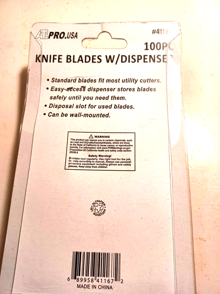 This item is for 100 utility blades. Free domestic shipping only. 100 pc. dispenser with used blade storage. thank you for looking