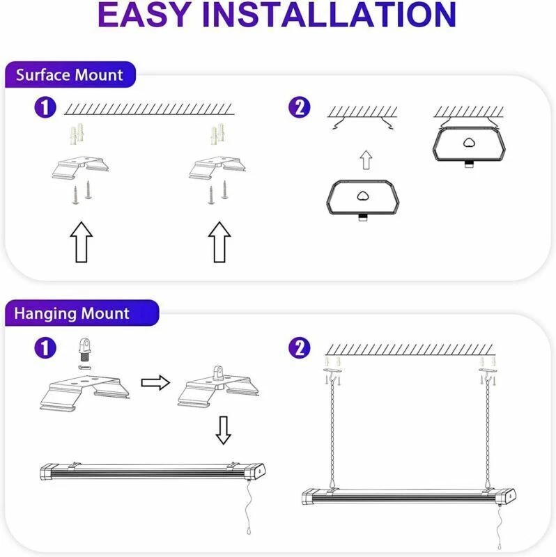 Product Description 100W 120W LED Shop Light Fixture For Garage Workshop Office Warehouse 1-2-4 Pack PACKAGE INCLUDE: Quantity and Wattage as your choice 【Proper lighting for store】 Provides 12,000 Lumens and consumes only 100-Watt of power (120Lm/w), our led shop lights at 5,000K features 120°beam angle,covers more space with CRI>80, non flicker. Making your shop more bright to showcase the products and attract more customers. 【Cut Down Your Electric Bills Up to 80%】Our led garage light is the ideal replacement for up to 5-lamp 32W Fluorescent light, provides you up to 50,000 hours(20 Years or More) service time and less maintenance. 【Ceiling & Chain Mount, Adjustable Pull Chain Switch】With the hassle-free installation, you can opt to surface mount or hang these industrial garage lights. Adjustable pull chain switch provides an instant on, with most convenient. These shop lights are easy to install as either hardwired fixtures or with a power cord. Come with a hardware package. 【Link up to 5 LED Shop Lights】 You can link up to 5 units garage lights together to simplifying your installation. Two connection ways, choose the small connector if you chain mount these led lights, choose 60cm connection wire if you opt to surface mount these commercial lights. Small connectors and 60cm connection wire are provided. 【Excellent Heat Dissipation】Aluminum material provides excellent heat dissipation, this led light offers even lighting with no hot or cold spots. The shatterproof bulbs remain cool when lit. Provides you good experience while working on your garage or workbench 【Free Customer Service & 5 Years Warranty】An extended warranty period of 5 years provides extra peace of mind that these industrial garage lights will hold up over time. The 50,000-hour lifespan means that you won’t need to replace them often. What’s more, any questions, please be free to let us know. We can provide you best support! Specifications Power: 100W Voltage: AC 120V Lumens: 12000lm Power factor:>0.9 Beam Angle: 120° CRI: >80 CCT: 5000K Daylight Lifespan: 50,000 hours Advantage 100W Super Bright Linkable Up to 5 Lights Easy to Install Great Heat Dissipation Low Maintenance Support Hanging Mount or Surface Mount Wide Application The led shop lights is suitable for office,auto shops,workshops,garages, basements, entertainment rooms, storage rooms, warehouses, equipment rooms, industrial workstations, workplaces, showrooms and any other industrial or commercial area. About Us Payment Shipping Returns Contact Us SHENZHEN NUOGUAN TECHNOLOGY CO. LTD founded in 2010. We are high-technology comany specialized in manufacture Commercial and industrial LED light. Advanced production equipment and excellend R&D ability help us to combining service ,production sell together provide top-level products to our customers. 1. Payment is expected within 7 days of auction close. Or Unpaid Items will be forfeited per eBay . 2. Taxes may be applicable at checkout as states adopt new laws and regulations regarding sales tax collection. 1. We ONLY ship to USA . 2. Orders processed within 1-2 business day of payment verification. There’s no Delivery service or courier service on Saturdays, Sundays or Public Holidays. 3. We have 3 different warehouse in US,so due to stock status and time differences, we will choose to ship your item from our first available warehouse for fast delivery. 4. We offer Free Shipping within the Lower 48 states! All packages are sent via UPS or USPS.The delivery time for UPS Ground is typically 2-5 business days. We strive to ensure 100% satisfaction for each and every one of our customers. we offer a 30-day 100% money-back guarantee on all eBay orders. If your item isn't just as you wished, simply send it back to us and we'll refund or replace your item. Please note that all returns must be authorized by our Customer Service department. please contact us though message first if you have any problem. USA Warehouse. Fast shipping! We are appreciated your purchasing form our eBay store. Office Time: 9:30 - 18:30, Monday - Saturday (UTC+8) Please contact us with eBay Message. We will respond you within 24 hours on business day. About Us SHENZHEN NUOGUAN TECHNOLOGY CO. LTD founded in 2010. We are high-technology comany specialized in manufacture Commercial and industrial LED light. Advanced production equipment and excellend R&D ability help us to combining service ,production sell together provide top-level products to our customers. Payment 1. Payment is expected within 7 days of auction close. Or Unpaid Items will be forfeited per eBay . 2. Taxes may be applicable at checkout as states adopt new laws and regulations regarding sales tax collection. Shipping 1. We ONLY ship to USA . 2. Orders processed within 1-2 business day of payment verification. There’s no Delivery service or courier service on Saturdays, Sundays or Public Holidays. 3. We have 3 different warehouse in US,so due to stock status and time differences, we will choose to ship your item from our first available warehouse for fast delivery. 4. We offer Free Shipping within the Lower 48 states! All packages are sent via UPS or USPS.The delivery time for UPS Ground is typically 2-5 business days. Returns We strive to ensure 100% satisfaction for each and every one of our customers. we offer a 30-day 100% money-back guarantee on all eBay orders. If your item isn't just as you wished, simply send it back to us and we'll refund or replace your item. Please note that all returns must be authorized by our Customer Service department. please contact us though message first if you have any problem. Contact Us USA Warehouse. Fast shipping! We are appreciated your purchasing form our eBay store. Office Time: 9:30 - 18:30, Monday - Saturday (UTC+8) Please contact us with eBay Message. We will respond you within 24 hours on business day. You may also like 100W LED Barn Light with Dusk To Dawn Photocell Outdoor Garden Yard Night Ligh