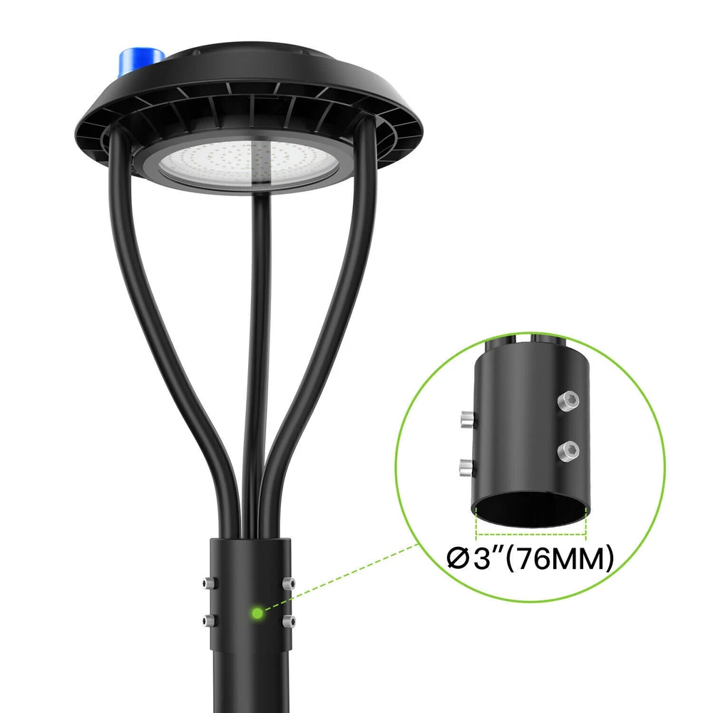 Product Description 100W Outdoor Street Garden Pathway Yard Parking Lot LED Pole Light Dusk to Dawn Light Up Larger Area - The 100w light post bring 14000Lm with SMD3030 chips, up to 140lm/watt, AC 100-277V universal voltage and 120°beam angle. 5000K color temperature of lighting is a nice choice for street light illumination. Anti-shock, anti-moisture, no glare, no strobe light, no ghosting, protecting your eyes. Dust to Dawn Photocell - The Led circular post top pole light comes with photocell sensor outside automatically turns ON at sundown/night and light post at sunrise/daytime with dusk to dawn, high power factor >0.9, more than 50000hours lifespan, reduce your electricity consumption, save your electronic bill. Provides a continuous, efficient outdoor lighting environment. Commercial Grade Material - The DLC/ETL Listed post pole light fixture made of die-casting aluminum body + protective glass cover. The scientific design helps the exterior light post top to dissipate better, achieve the best use of the led lighting post. IP65 waterproof for drying, wet environment, sandstorms, snowstorms, and harsh weather conditions. Wide Application - The circular post top design give the lamp a uniform brightness and can be applied to a variety of outdoor scences, such as pathway, street, front yard, city expressway, trunk/rustic road, factories, playground, school, garden, courtyard, parking lot, public park, walkway, exterior, driveway, store, farmyard or any other commercial and industrial area. Installation and Warranty - The pole mount of our post area light fits for a 2 3/8-inch OD tenon & less than or equal to 3 inch standard pole, very easy to install and transfor(Please see the video on the product page for more installation info). KUKUPPO offer you lasting safety and reliability backed by a 5-year warranty. For a bulk order, email us in advance to get a different offer. Specifications: Rated Wattage: 100W Luminous Flux: 14000Lm Color Temperature: 5000K Protection Grade: IP65 Material : Aluminum Body+Glass Cover Input Voltage : AC100-277V 50/60Hz Dimension: Dia 400x650 mm Base: 2 Pins Wire Power Factor: >90% Beam Angle : 120 degrees Average Lifetime : More than 50000 hours Flexible Installation The pole mount of our post area light fits for a 2 3/8-inch OD tenon & less than or equal to 3 inch standard pole, very easy to install and transfor Commercial Grade Material DLC/ETL Listed quality. Scientific design helps the exterior light post top to dissipate better, achieve the best use of the led lighting post. Durable Support Rod Made of thick aluminum, stable and strong, waterproof and rustproof. High performance quality provides with lasting safety and reliability. Ultra Bright LED Chips With SMD3030 chips, up to 140lm/watt. Anti-shock, anti-moisture, no glare, no strobe light, no ghosting, protecting your eyes. Kindly Note Please note that the light can not be used IN the water. Please confirm the wire connection is right while installing. About Us Payment Shipping Returns Contact Us SHENZHEN NUOGUAN TECHNOLOGY CO. LTD founded in 2010. We are high-technology comany specialized in manufacture Commercial and industrial LED light. Advanced production equipment and excellend R&D ability help us to combining service ,production sell together provide top-level products to our customers. 1. Payment is expected within 7 days of auction close. Or Unpaid Items will be forfeited per eBay . 2. Taxes may be applicable at checkout as states adopt new laws and regulations regarding sales tax collection. 1. We ONLY ship to USA . 2. Orders processed within 1-2 business day of payment verification. There’s no Delivery service or courier service on Saturdays, Sundays or Public Holidays. 3. We have 3 different warehouse in US,so due to stock status and time differences, we will choose to ship your item from our first available warehouse for fast delivery. 4. We offer Free Shipping within the Lower 48 states! All packages are sent via UPS or USPS.The delivery time for UPS Ground is typically 2-5 business days. We strive to ensure 100% satisfaction for each and every one of our customers. we offer a 30-day 100% money-back guarantee on all eBay orders. If your item isn't just as you wished, simply send it back to us and we'll refund or replace your item. Please note that all returns must be authorized by our Customer Service department. please contact us though message first if you have any problem. USA Warehouse. Fast shipping! We are appreciated your purchasing form our eBay store. Office Time: 9:30 - 18:30, Monday - Saturday (UTC+8) Please contact us with eBay Message. We will respond you within 24 hours on business day. About Us SHENZHEN NUOGUAN TECHNOLOGY CO. LTD founded in 2010. We are high-technology comany specialized in manufacture Commercial and industrial LED light. Advanced production equipment and excellend R&D ability help us to combining service ,production sell together provide top-level products to our customers. Payment 1. Payment is expected within 7 days of auction close. Or Unpaid Items will be forfeited per eBay . 2. Taxes may be applicable at checkout as states adopt new laws and regulations regarding sales tax collection. Shipping 1. We ONLY ship to USA . 2. Orders processed within 1-2 business day of payment verification. There’s no Delivery service or courier service on Saturdays, Sundays or Public Holidays. 3. We have 3 different warehouse in US,so due to stock status and time differences, we will choose to ship your item from our first available warehouse for fast delivery. 4. We offer Free Shipping within the Lower 48 states! All packages are sent via UPS or USPS.The delivery time for UPS Ground is typically 2-5 business days. Returns We strive to ensure 100% satisfaction for each and every one of our customers. we offer a 30-day 100% money-back guarantee on all eBay orders. If your item isn't just as you wished, simply send it back to us and we'll refund or replace your i