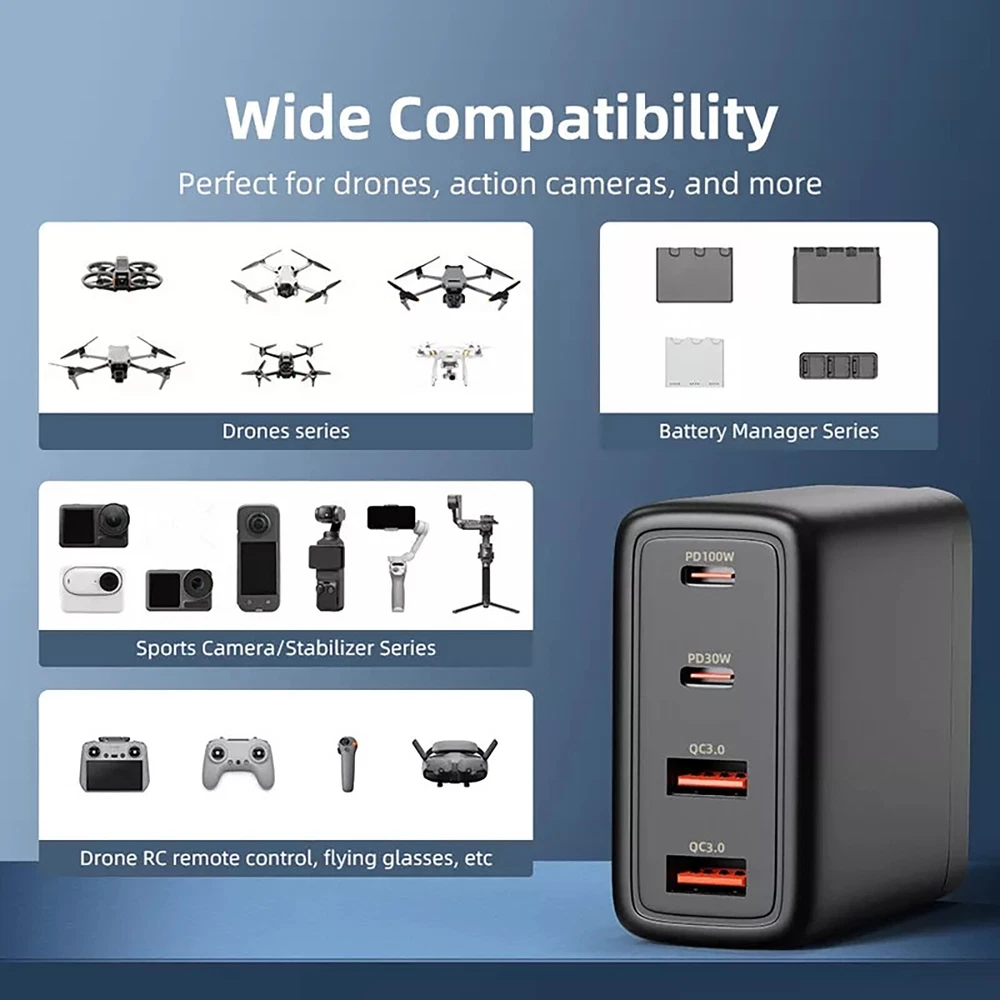 You may also like 433MHZ WIRELESS DOOR WINDOW GAP MAGNETIC CONTACT SENSOR FOR ALARM SYSTEM c 3.99 USD 9.99 USD 2* Black Iron Humbucker Pickup Mounting Ring Frame Bridge Neck Flat Accessories 10.89 USD 2 in 1 Snap Ring Pliers Plier Set Circlip Combination Retaining Clip Heavy Duty 5.59 USD 9.99 USD 252pcs Stainless steel Car Screws Kit For Axial SCX24 AXI90081 Deadbolt RC car 13.89 USD 100PCS stem extenders/extensions for repairing Extending watch crown stems 12.78 USD 1*Mount CNC Aluminium Alloy For Gopro Tripod Mount Adapter 1/4 Thread Adapter 10.89 USD Product Description Features: Suitable for drones, sports cameras and other equipment, compatible with most mainstream brands of fast charging protocols for cell phones, tablets, laptops and other electronic devices 100W fast charging, multi-port fast charging, a charger for 4 devices Easy to carry around design, more convenient for traveling Intelligent temperature control, keep the best temperature when charging. Eight protection safety and worry, for charging protection, to ensure worry-free charging experience Innovative semiconductor materials, to achieve efficient charging Specifications: Input: 100-240V 50/60Hz 1.2A PD1 Out put: 5V3A, 9V3A, 12V3A, 15V3A, 20V5A PD2 Out put: 5V3A, 9V3A, 12V2.5A, 15V2A, 20V1.5A USB1Out put: 5V3A, 9V2A, 12V1.5A USB2Out put: 5V3A, 9V2A, 12V1.5A PD1+PD2=65W+30W Max PD1+USB(1/2)=65W+18W Max PD2+USB(1/2)=5V3AUSB1+USB2=5V3A Package includes: 1* Charger 1* Charging Cable About Us Payment Shipping Returns Contact Us Welcome to our store! Our aim is to offer our clients items with high quality and fast delivery, also our price will be reasonable. We supply many products including video game, health & beauty, phone accessories, computers accessories, camera & camcorder,car accessories, games, toys & hobbies, jewelry, antique & craftwork. Excellent customer service and a reliable credit standing is our tenet. We accept all verified payments from ebay. Orders will be shipped after receiving cleared payment. We ship most of our orders within 24 hours, and may up to 48 hours. If you want faster shipping way. Please contact us before making payment. Sometimes due to problems with our transportation company system, your shipping information may be delayed to update. We recommend that you try again after 3-4 days. If you still haven't checked the shipping information, you can contact us by ebay message. Always believe we can figure things out with communication, if it comes to return, the pacakge must be intact and the same as you receive. If you have any questions, please feel free to email our service specialists 24 Hours a Day, 7 Days a Week. We will reply you ASAP. Return/refund is accepted within 30 days after the buyer receives the item. NO exchange will be accepted after 30 days from the date when the item is received. Please contact us first before returning your product!!! If you have any questions, our Customer Service staffs welcome you to email us. We strive to answer all questions and resolve any problems as quickly as possible. We care about our valued customers, and will always try to help you. So if you have any problems, You can contact us 7*24, we will reply at the first time. About Us Welcome to our store! Our aim is to offer our clients items with high quality and fast delivery, also our price will be reasonable. We supply many products including video game, health & beauty, phone accessories, computers accessories, camera & camcorder,car accessories, games, toys & hobbies, jewelry, antique & craftwork. Excellent customer service and a reliable credit standing is our tenet. Payment We accept all verified payments from ebay. Orders will be shipped after receiving cleared payment. Shipping We ship most of our orders within 24 hours, and may up to 48 hours. If you want faster shipping way. Please contact us before making payment. Sometimes due to problems with our transportation company system, your shipping information may be delayed to update. We recommend that you try again after 3-4 days. If you still haven't checked the shipping information, you can contact us by ebay message. Returns Always believe we can figure things out with communication, if it comes to return, the pacakge must be intact and the same as you receive. If you have any questions, please feel free to email our service specialists 24 Hours a Day, 7 Days a Week. We will reply you ASAP. Return/refund is accepted within 30 days after the buyer receives the item. NO exchange will be accepted after 30 days from the date when the item is received. Please contact us first before returning your product!!! Contact Us If you have any questions, our Customer Service staffs welcome you to email us. We strive to answer all questions and resolve any problems as quickly as possible. We care about our valued customers, and will always try to help you. So if you have any problems, You can contact us 7*24, we will reply at the first time. 5-Button Keyless Entry Remote Car Key For Chevrolet For GMC For Cadillac Part 9.99 USD 9.99 USD Adjustable Magnetic Camber Castor Strut Wheel Alignment Gauge Tool Positioner a 8.99 USD 9.99 USD D-BG5 Vertical Battery Pack Grip Endurance Extension For Pentax K3 K3II New 53.89 USD Original LCD Display Touch Screen With Back Rear Case Shell For GoPro Hero 9 82.89 USD Durable Universal Plastic Piston Stopper Stop Replacement For Many Chainsaws M 2.99 USD 9.99 USD Universal Waterproof Bike Mount Holder Case Waterproof Bicycle Handlebar Mount 19.39 USD 9.99 USD Red 1/24 Scale Aolly Model Car Display Decor w/ Sound &Light Effect &Pull Back 39.89 USD For Mercedes Benz E 3-Buttons Car Remote Key Fob Case Holder Cover Chain y 10.89 USD PCIe 4.0 PH44 PLUS SSD Expansion Split Card RAID 0 Mode Supports 4 Nvme M.2 31.59 USD New Pressure Washer Hose Connector Adapter M22-1/4 Female Connect Release Nozzle 11.99 USD 9.99 USD 3.5mm External Microphone For Car Radio Stereo Phone Call Audio mic Clear 3.79 USD 9.99 USD 1Set Hand Watc
