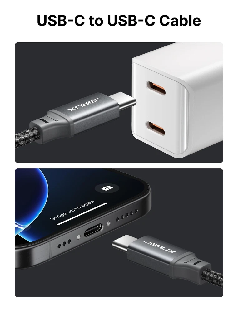 100W USB C to USB C Cable [2-Pack 10FT], Type C Fast Charging Cable Compatible with iPhone 16/16 Plus/16 Pro/16 Pro Max,iPhone 15 Series, Galaxy S24/S23/S22, Car Play, MacBook, iPad, Pixel-Grey Double Ended USB-C Cable: This is the USB-C to USB-C Cable. NOT the USB-C to USB-A cable, which means it has the same USB-C charger block on the both ends, so you need a USB-C wall charger to charge your device. NOTE: This product DO NOT support video output. 100W USB C Fast Charging: 100W Usb c to usb c cable has PD and QC fast charging technology, supports up to 100W (20V/5A) output with usb-c power delivery adapters such as 20W/25W/30W/45W/60W/65W/96W/100W. Fast charge MacBook Pro 14” up to 68% in 35mins, charge Samsung S23 up to 92% in 35mins. (NOTE: The actual charging speed depends on your device and wall charger.) Build in Emark Chip: This usbc to usbc cable has a built-in SUPER E-MARK chip, which will intelligently identify the charging device and its charging power, thus adjusting the appropriate voltage and current to provide the fastest fast charging power without overloading and protecting your device's battery. It also detects when the battery power reaches 80% and turns on the trickle mode to effectively extend the life of the battery and the device. Certified Safety & Quality Assurance: Type C to Type C cable has electronic safety certifications that comply with appropriate standards, you have no need to worry about this cable quality at all. Upgraded 3D aluminum connector and exclusive laser welding technology, which can ensure the metal part won't break. Perfect Compatibility: USB C to C Cable Compatible with virtually all USB-C devices including phones, tablets, and laptops. Such as MacBook Air/Pro, iPhone 16/16 Plus/16 Pro/16 Pro Max, , iPhone 15/15 Plus/15 Pro/15 Pro Max, Samsung Galaxy S24/S23/S22/S21/S20/Note 20 Series, Pixel series, iPad Mini 6, iPad Pro, iPad Air, Steam Deck, Switch and more upcoming devices with USB-C port. What You Get: We provide this USB C to USB C fast Charging Cable 2 Pack with an 18-Month worry-free period and 24/7 friendly client consultation, if you have any questions, we will resolve your issue within 24 hours Shipping We offer FREE shipping on all orders! We ship within Three business days of payment, usually sooner. We use a selection of shipping services such as UPS, FedEx, USPS etc. We only ship to the lower 48 states, no APO/FPO addresses or PO Boxes allowed. Local pickups and combined shipping options are not provided at this time. Return You can return a product for up to 30 days from the date you purchased it. Any product you return must be in the same condition you received it and in the original packaging. Please keep the receipt. Payment We accept payment by any of the following methods: PayPal Please pay as soon as possible after winning an auction, as that will allow us to post your item to you sooner! Feedback Customer satisfaction is very important to us. If you have any problem with your order, please contact us and we will do our best to make you satisfied. Contact Us If you have any queries, please contact us via ebay. We usually respond within 24 hours on weekdays. Please visit our eBay store to check out other items for sale! Thank you for shopping at our store.