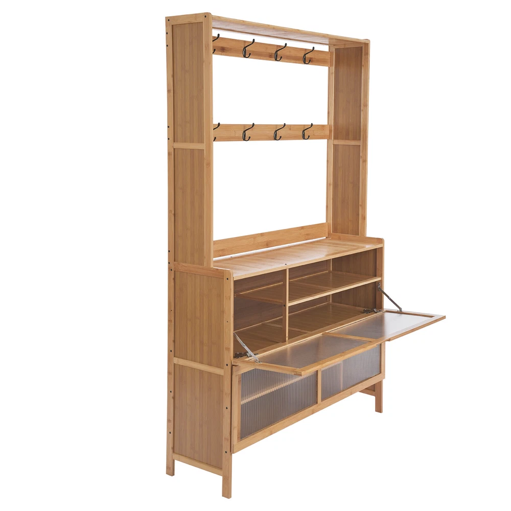100cm Coat Rack with Shoe Organizer Storage Bench and Shelf