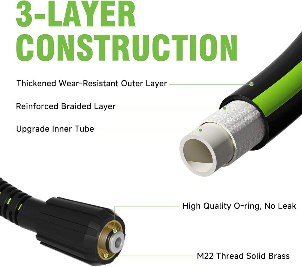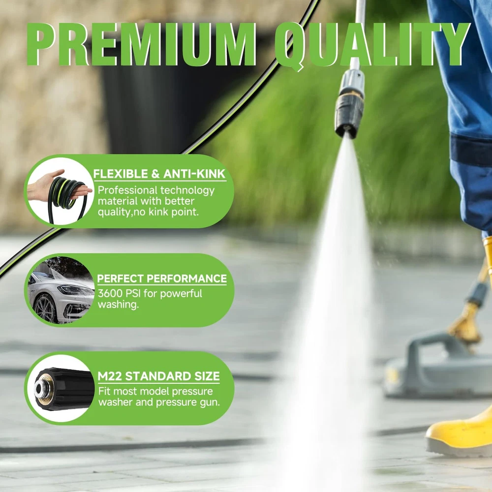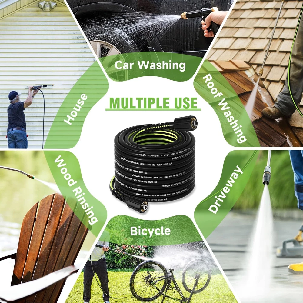 1. This hose is a total game-changer! The extra length gives me so much freedom to move around without constantly dragging the machine. It's incredibly durable and hasn't kinked once, even when I've wrapped it around obstacles. The quick-connect fittings are super convenient and have stayed completely leak-free. A fantastic upgrade that makes washing the car or deck so much easier.