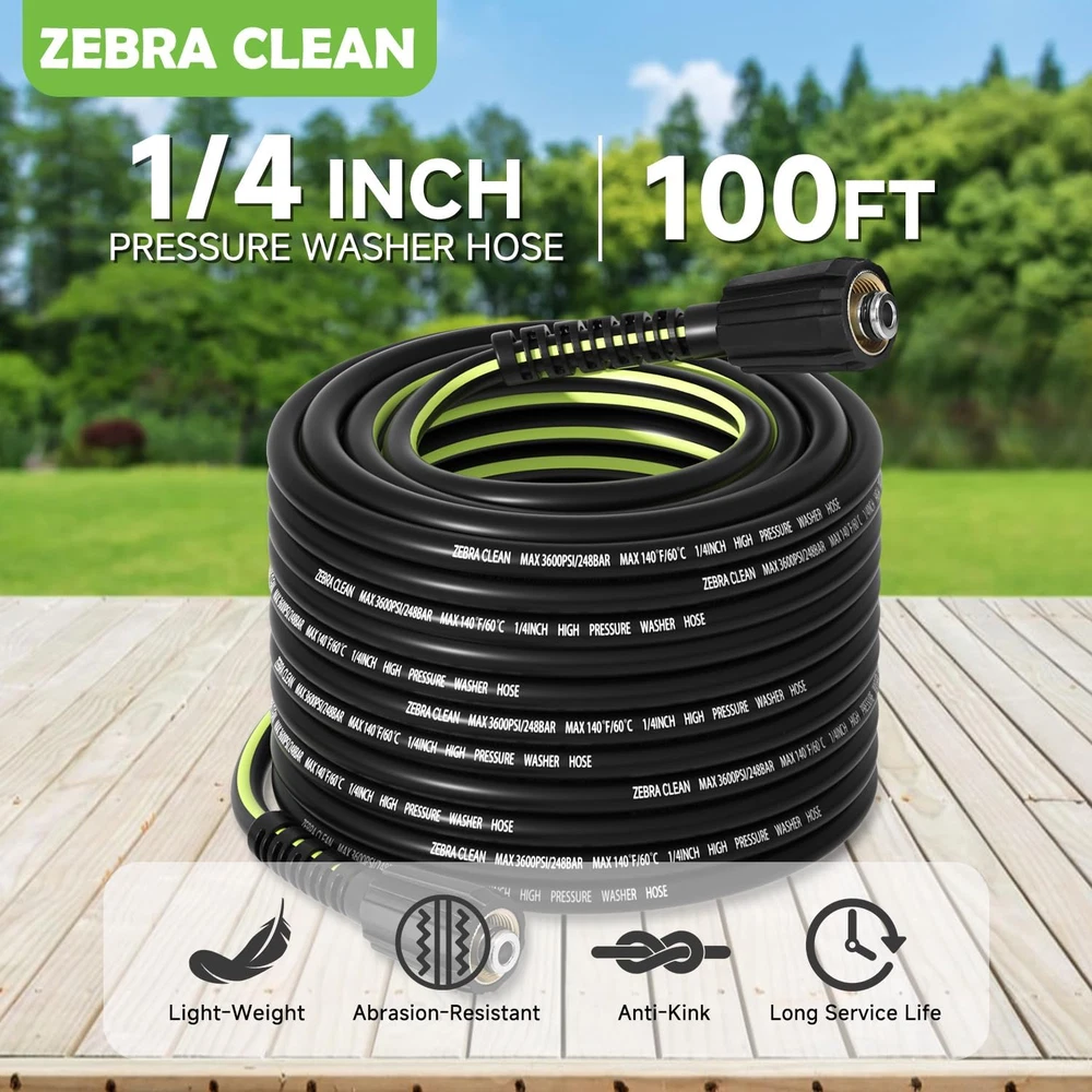 100ft 1/4" 3600 PSI Kink-Resistant Pressure Washer Hose