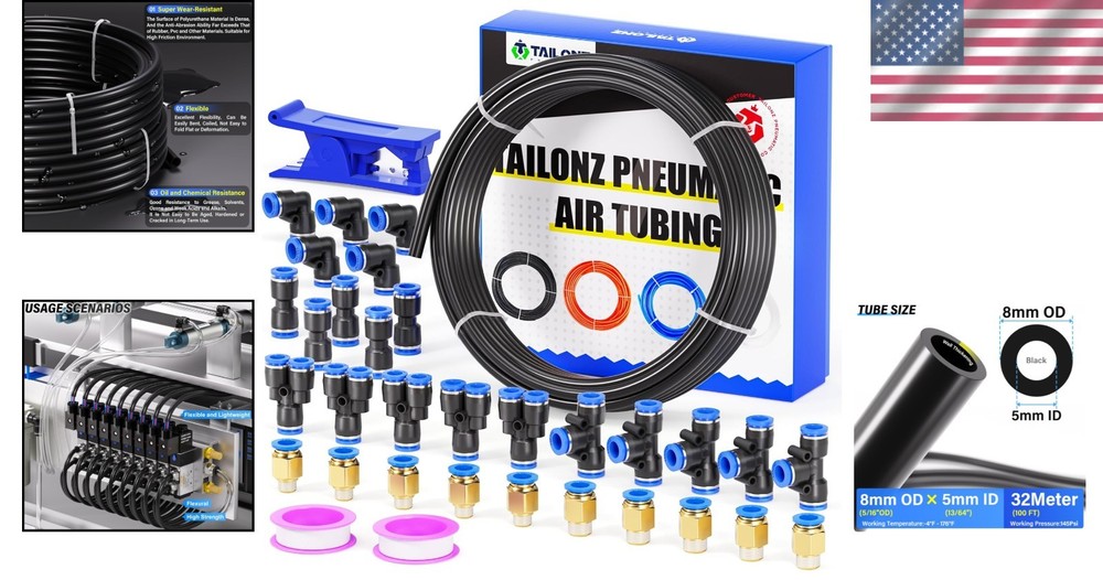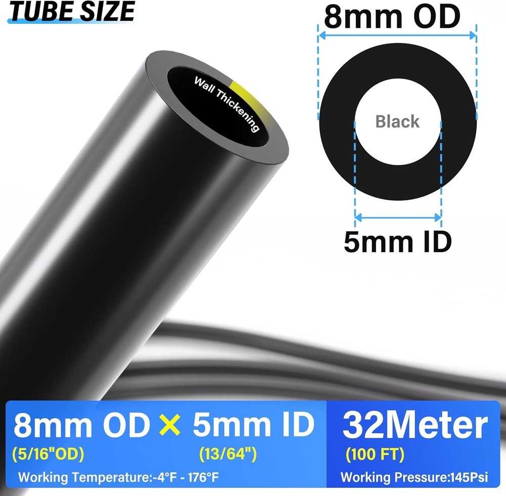 100ft Black Polyurethane PU Air Hose Kit ‹ › ‹ › ‹ › ‹ › ‹ › ‹ › ‹ › ‹ › ‹ › ‹ › ‹ › 100ft Black Polyurethane PU Air Hose Kit Model: Pu Tube Kit (100ft) Size: 8mm OD (5/16'') | 5mm ID Working Pressure: 145 Psi Working Temperature: -4℉ ~ 176℉ Product Features: High Flexibility for easy maneuverability in tight spaces. Pressure and knock resistance ensures durability and long-lasting use. High resilience allows the hose to maintain its shape and performance. Benefits: Perfect for a wide range of applications in industrial, automotive, and home settings. Designed to withstand extreme conditions, making it suitable for both indoor and outdoor use. Lightweight and easy to handle, ensuring you can transport and use it without hassle. Reduces the risk of kinking and tangling, allowing for a smoother workflow. Why Choose Our 100ft Black Polyurethane PU Air Hose Kit? If you are seeking versatility and performance combined, look no further than our 100ft Black Polyurethane PU Air Hose Kit. Its high flexibility makes it easy to use in tight spaces while providing robust resilience against knocks and pressure. With a working pressure of 145 Psi and a wide working temperature range, this hose is built to handle heavy-duty tasks in any environment. Don't compromise on quality; elevate your experience with the best air hose kit on the market today. Order now and experience the difference in your projects! Shipping Free & Fast Shipping - We offer free shipping to most of the USA with a normal delivery time of 3-10 business days. However, due to various situations, additional delivery time (up to 3 weeks) may be required for some items. Alternative Carriers - We may use alternative carriers (e.g. USPS, FedEx, UPS, etc.) to ensure your package arrives safely and on time. Due to the use of multiple carriers, we are unable to provide a tracking number automatically. Handling Time - Orders are processed and shipped within 1-5 business days of receiving cleared payment. Shipping Restrictions - Shipping to Alaska, Hawaii, Puerto Rico, Guam, and other US territories may incur shipping charges or delivery restrictions. Please contact us before ordering, or your order can be refunded/cancelled. State Restrictions - There may be restrictions based on your state of purchase. For example, certain items may not be shipped to California due to state regulations. Contact for Tracking Updates - If you require tracking updates or have any concerns about the delivery of your order, please feel free to contact us, and we will be happy to assist you. Return 30-Day Hassle-Free Returns - We want you to be completely satisfied with your purchase. If you are not, you can return the item within 30 days of receiving it for a full refund or exchange. Easy Return Process - To start a return, simply contact us and we will provide you with a prepaid return shipping label and detailed instructions. Restocking Fee - There are no restocking fees for returns. However, the buyer is responsible for return shipping costs if the return is not due to a seller's error. Refund Processing Time - Refunds will be processed within 5 business days of receiving the returned item in its condition. Payment We accept all major credit cards, PayPal, and Apple Pay for your convenience. Your payment information is secure and encrypted to ensure a safe and seamless transaction. Please complete your payment within 3 days of purchase to avoid any delays in shipping. Feedback Your feedback is extremely important to us. We strive to provide the best products and customer service possible. If you are satisfied with your purchase, please take a moment to leave us a positive review. If you have any concerns or issues with your order, please contact us before leaving negative feedback. We are committed to resolving any problems and ensuring your satisfaction. Contact Us If you have any questions or concerns, please feel free to out to our customer support team. You can contact us through the eBay messaging system. We are available Monday to Friday, 9:00 am to 5:00 pm EST, and we will do our best to respond to your inquiry within 24 hours. Buy it now and enjoy a pleasant shopping experience! Item Depth: 3.07 inches Unit Quantity: 4.18 pounds Type: Air Hose Suitable For: Air Compressor Application: Mixing Number of Items in Set: 1 Package Quantity: 1 Material: Polyurethane Connection Type: Snap-On Color: Black Item Diameter: 8mm (5/16 in) Item Weight: 4.18 pounds Unit Type: lb