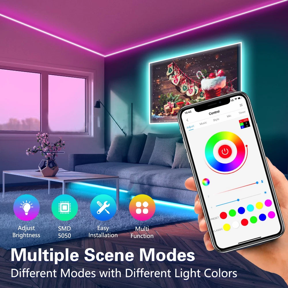 These LED lights transformed my bedroom into a cozy, vibrant space! At 100 feet, they cover every corner, and the voice control via Alexa/Google Assistant makes adjustments effortless. Perfect for parties, Christmas, or everyday ambiance—colors are rich, brightness customizable, and setup was a breeze. Highly recommend for instant mood lighting!