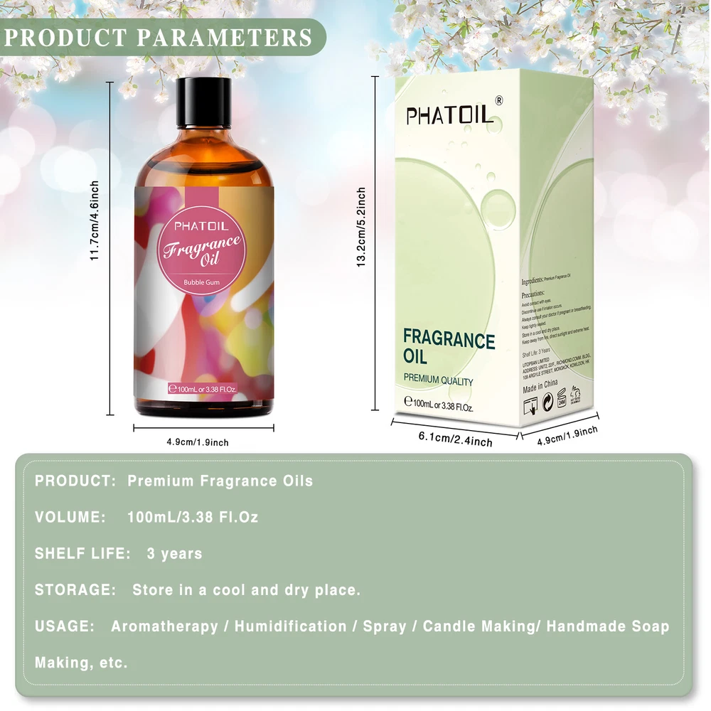 √ Essential Oils /Fragrance Oils -√ US STOCK -√ FREE SHIPPING 15x 5ML Essential Oil Set Aromatherapy Gift Kit 100% Pure Oils for Humidifier 15.99 USD Free shipping Natural Essential Oil Set Top 12 Gift Set for Diffuser, Massage,Soap Making 5ML 16.01 USD Free shipping Pure Essential Oils Gift Set 10x 10 mL -Top 10 Aromatherapy Oils for Diffusers 16.99 USD Free shipping 10x 10ml Fruit Fragrance Oils Essential Oils Gift Set for Aromatherapy Diffuser 21.59 USD Free shipping PHATOIL 9PCS Fruity Fragrance Oils Gift Set 10ML,for Diffusers,Soap,DIY Candle 15.77 USD Free shipping 100ml Essential Oils Diffuser Oil 100% Pure and Natural Aromatherapy Grade Oil 6.99 USD Free shipping Fruit Fragrance Oil for Aromatherapy, Essential Oils for Diffuser,Candle Making 4.99 USD Free shipping Essential Oils 30 mL (1 oz) - Pure and Natural,Undiluted - Therapeutic Grade Oil 7.99 USD Free shipping Essential Oils 10ml Pure & Natural Aromatherapy Oil for Diffusers -79+ Options! 5.98 USD Free shipping 10 mL Essential Oils - Pure and Natural - Therapeutic Grade Oil - Free Shipping! 5.98 USD Free shipping 10ml Diffuser Essential Oils Fragrances 100% Pure Oil For Aromatherapy,Soap DIY 5.98 USD Free shipping 10/30/100ml Frankincense Essential Oil,Pure Natural for Skin, Diffuser,Massage 5.99 USD Free shipping Similar Items Description Fragrance Oils Introduction: The aromas of these home fragrance oils are extremely rich, complex, and long-lasting. It's safe for use and contains no toxic or harmful preservatives, no gluten, or strange odor. Each fragrance oil comes with 100ml amber brown bottle, which will keep the oil fresh and help against light degradation. Perfect Perfume Oils for aromatherapy, diffusers, humidifier, oil burners, Spa, and air purifiers. Diffuse in the form of incense or directly inhale the aroma of fragrance oils. Specification: Item Type: PHATOIL Fragrance Oil Net Content: 100ml/3.38fl.oz Ingredients: Aromatic chemicals and natural ingredients (such as essential oils, extracts and resins) 18 fragrances: White Musk, Fresh Linen, Bubble Gum, Sea Breeze, Parma Violet, Black Orchid, Orange Blossom, Baby Powder, Japanese Magnolia, Mandarin, Coffee, Honeysuckle, Freesia, Black Opium, Angel, D-Jadore, Jadore, La Vie Est Belle. Usage: Enjoy the aroma: Apply a few of fragrance oils on your body to keep the nice and unique scent with you for several hours. Air Purifying: Can be used with Diffusers, Air Purifiers, and with Steaming. Diffuse in the form of incense or directly inhale the aroma of fragrance oils. Bathing: Add a few drops for a heavenly comfortable feeling filled in the soothing aroma. DIY Scented Products: Fragrance oils are used to add alluring scents to probably all kinds of products including candles, perfumes, homemade cleaning products. Precautions: For external use only. Keep the bottle tightly sealed. Store in a cool and dry place. Avoid contact with eyes. If pregnant or nursing, consult your doctor before use. Package Includes: 1 x 100mL/3.38Fl.Oz PHATOIL Fragrance Oil (With a beautiful box) Detail Image Payment eBay Accepts The Following Payment Methods: 1.Visa 2.Mastercard 3.PayPal 4.Apple Pay 5.Google Pay 6.American Express Card Shipping All the items will be dispatched within 2 business day after the payment is clear. We are not responsible for any custom duty or import tax. Contact Us We will leave Positive Feedback after receiving the payment. Please contact us if you are not satisfied with the item after receive it. If there is any question about our products, please feel free to contact us by ebay message instead of email, we will reply all the ebay messages within 24 hours.
