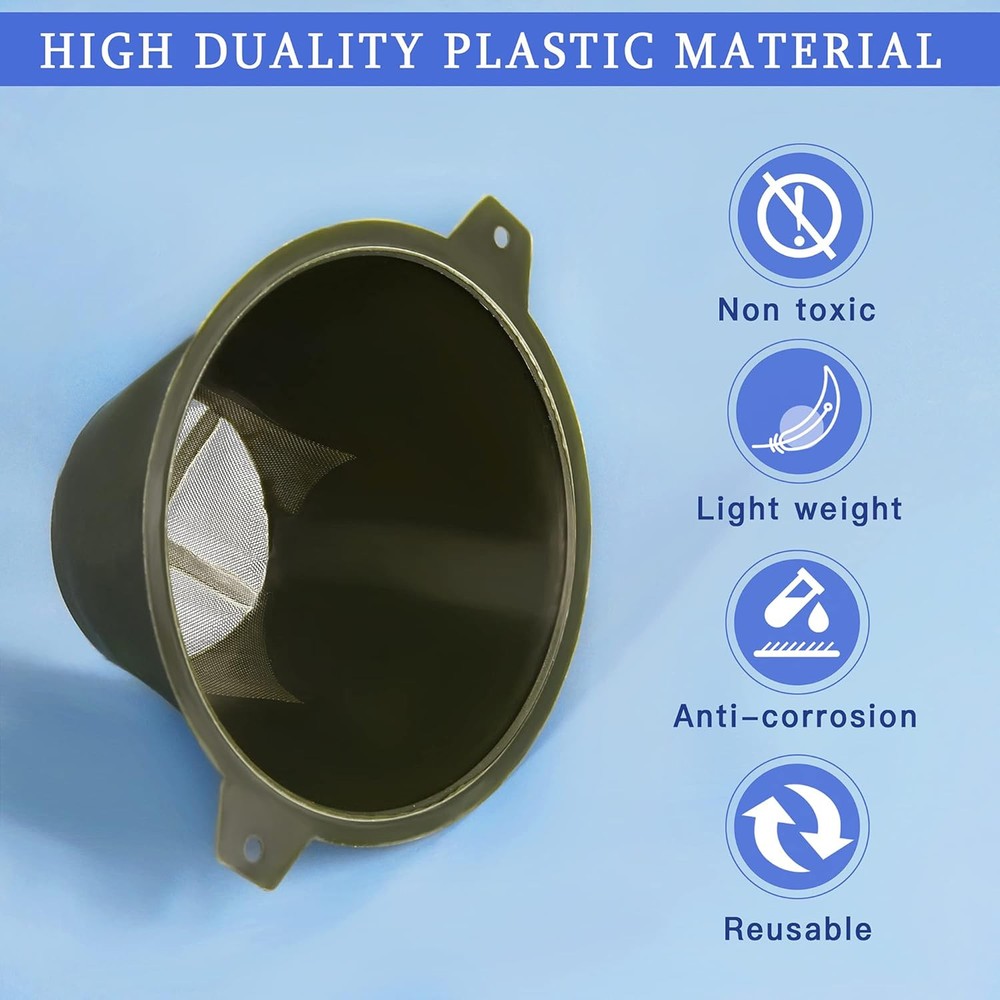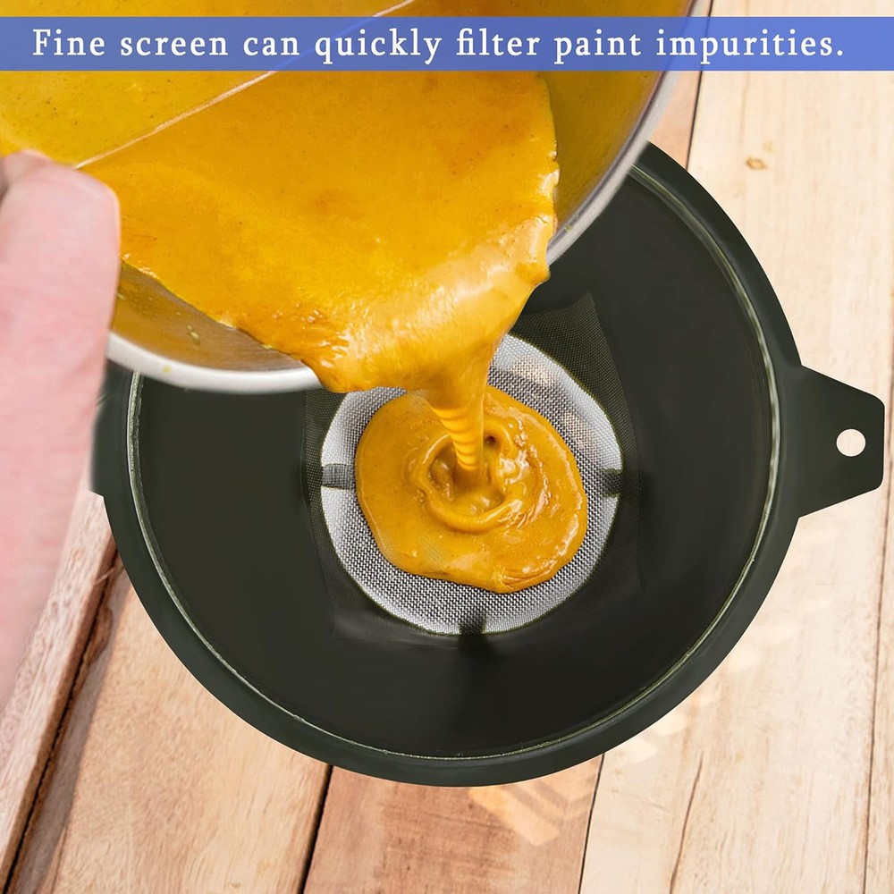 Paint Filter, 100 mm Plastic Strainer with Fine Nylon Mesh, Transparent Product Details Package Dimensions : 7.64 x 6.61 x 2.91 inches; 2.08 ounces Item model number : OF-003 Manufacturer : Worldity Country of Origin : China Material: Plastic Brand: Worldity Color: Transparent Wide End Diameter: 1E+2 Millimeters Duable Material: Made of high quality plastic material ,non toxic, anti-corrosion safe material could allows you to reuse it many times Exquisite Design: Fine screens hasn't clogged when using these, and the bottom plastic bar bottom can effectively prevent the filter from falling Easy to Clean: Our plastic filters are not easy to osmosis, and just make it with water directly, which can not affect next use Multi Purpose: The filter is much easier to use than the traditional paper cone filters, you can use it to car painting, art painting ect Warmest Service: If you receive damaged item or you have any dissatisfaction, please contact us first, we will always serve you