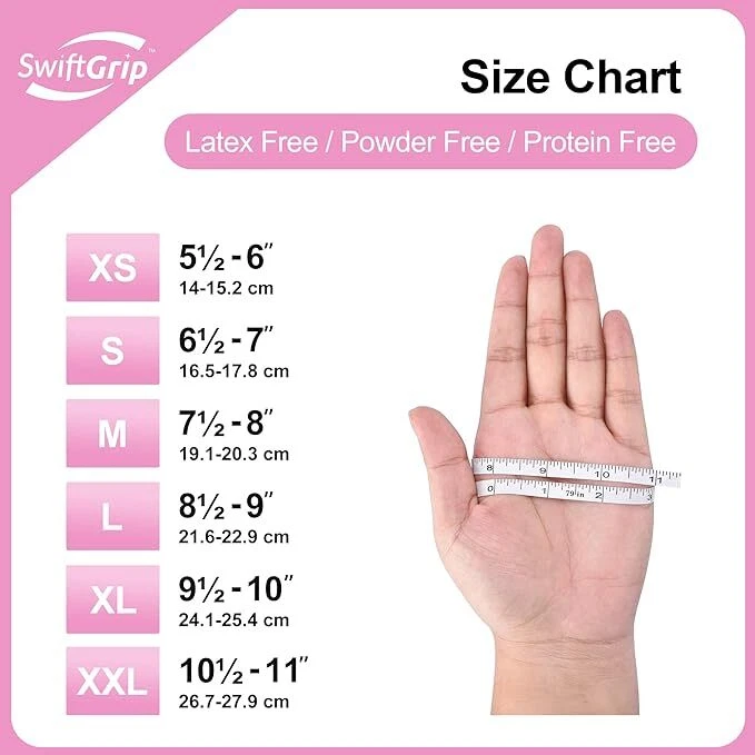 Material: Nitrile Brand: SwiftGrip Size: XS-XL MPN: Does not Apply Powdering: Powder-Free