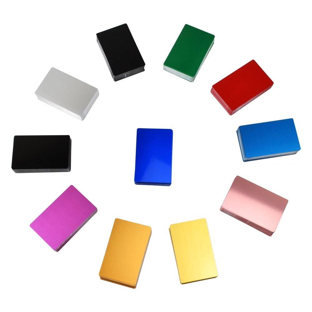 Features: 1. High quality aluminum Blank business cards, blank/round corner/edge not rough, specifically designed for engraving. 2. Standard business card size 86mm x 54mm. 3. Great for high-end business cards, reward cards, membership cards, simply to engrave on. Specifications: Material: Aluminium Alloy Color: Bright Black Size: 86mm x 54mm Thickness: 0.21mm Quantity: 100 Pcs ± 5 !!!!PLEASE READ!!!! 1. 100PCS single color per pack. 2. No mixed color option. 3. The metal business card is made of aluminum, so please be sure that your machine can engrave the material before placing the order. 4. Please be noted that the picture may not reflect the actual color of the item since the difference among the monitors. Thank you! - If you have any questions, please send us a message and we will be happy to get back to you.