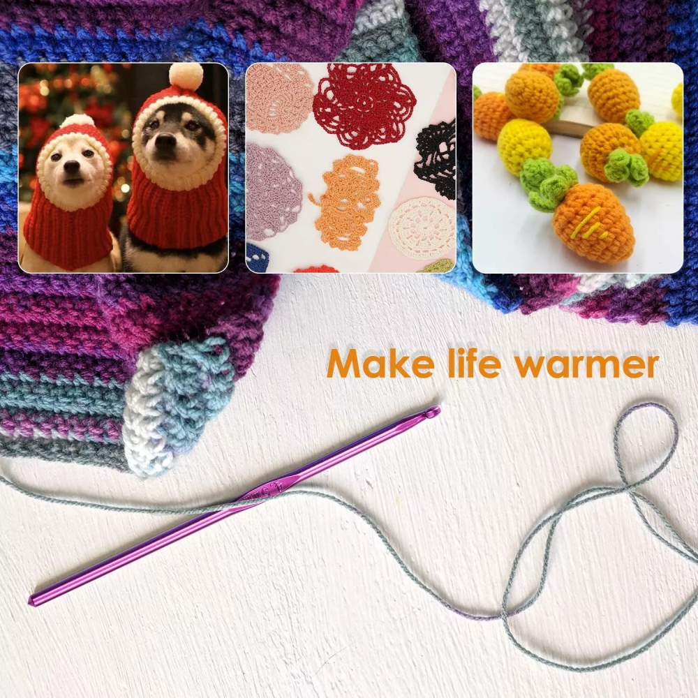 Complete Crochet Hooks Set for Crafting Enthusiasts Features Our 100 pcs Crochet Hooks Set is a comprehensive kit perfect for beginners and craft lovers alike. It includes a range of tools and accessories, ensuring a smooth and enjoyable crafting experience. The set is designed to keep everything organized in one place, making it easy to carry for on-the-go crafting. Comprehensive Crochet Hooks Set 22 Crochet Hook Sizes: Includes sizes from 0.6 mm to 6 mm, suitable for thin lace yarn to regular or thick yarn. Smooth Crafting: Each hook has a deep throat to catch the yarn effectively, with no rough edges for a seamless crochet experience. Package List: 10 Colorful Aluminum Hooks 12 Silver Hooks 20 Stitch Markers 1 Gauge 2 Stitch Holders 3 Stainless Steel Needles 10 Bead Pins 3 Knitting Needles 6 Plastic Sewing Needles 2 Point Protectors 15 Counting Circular Rings 2 Row Counters 1 Thimble 10 Gold Pins 1 Scissor 1 Measure