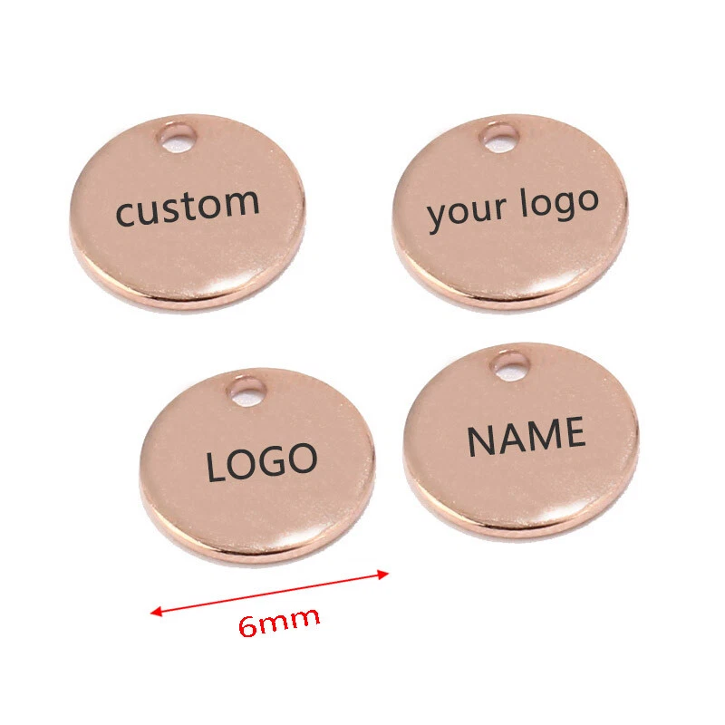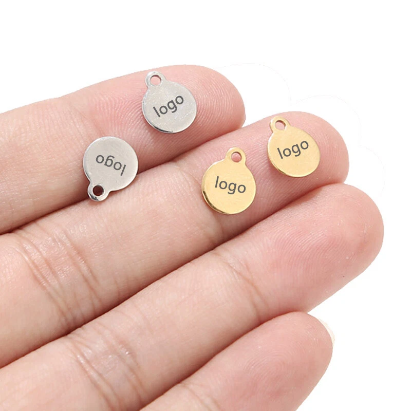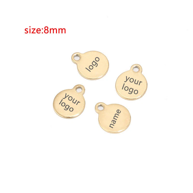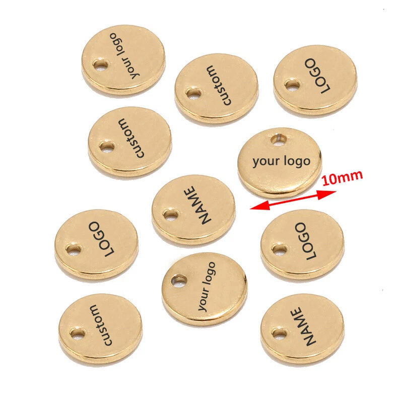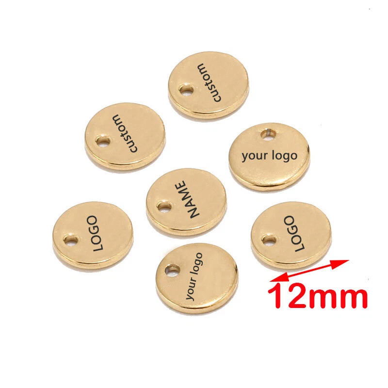 100pcs Stainless Steel Gold Round Personalized Coin Charms Customized Logo Tag Material: Stainless Steel, nickel safe, lead free Size: as shown in the picture Quantity: 100pcs Color: Gold/Steel/Rose Gold How to Order? Send the logo by .JPG and then place the order DIRECTLY. Samples will be made for confirmation. Need to confirm timely once samples sent.