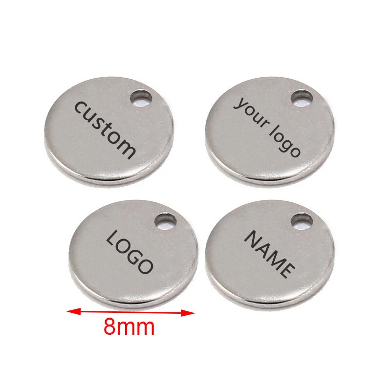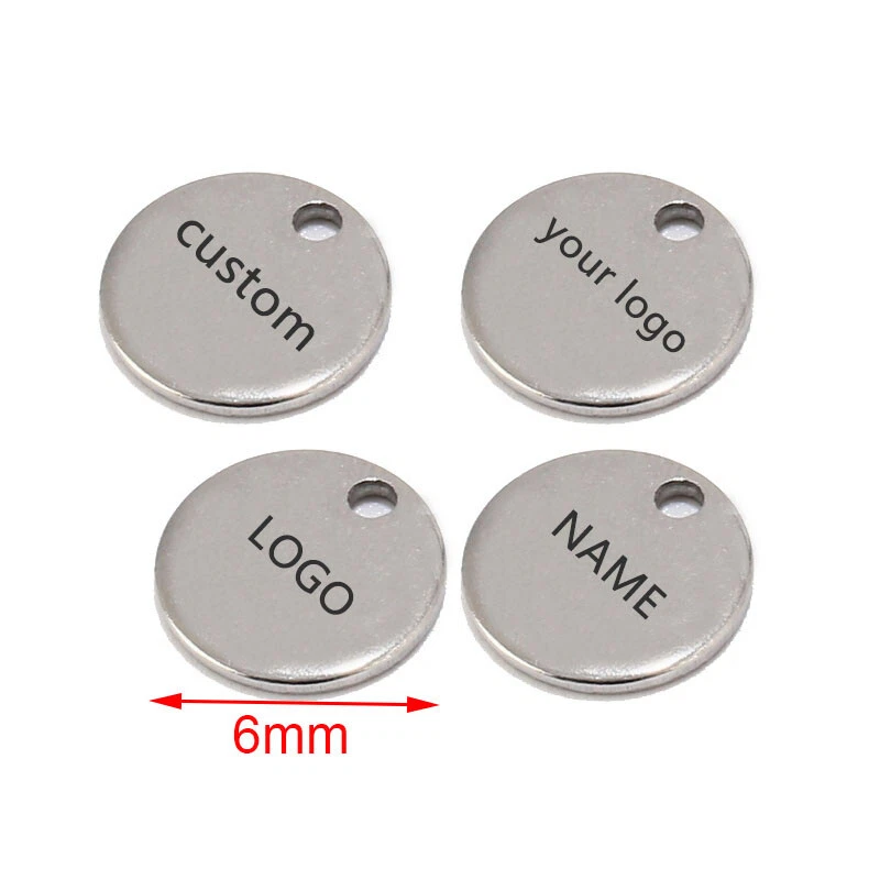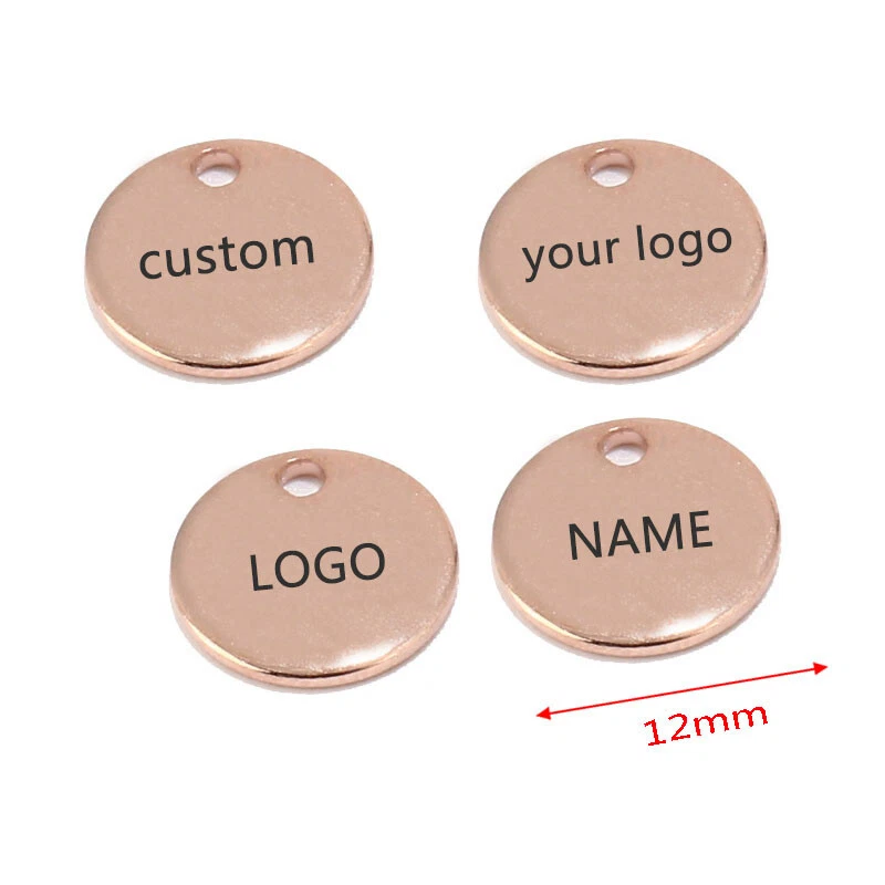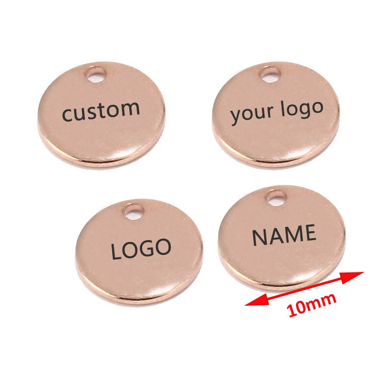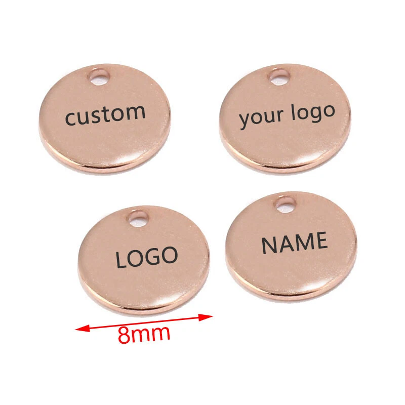 100pcs Stainless Steel Gold Round Personalized Coin Charms Customized Logo Tag Material: Stainless Steel, nickel safe, lead free Size: as shown in the picture Quantity: 100pcs Color: Gold/Steel/Rose Gold How to Order? Send the logo by .JPG and then place the order DIRECTLY. Samples will be made for confirmation. Need to confirm timely once samples sent.