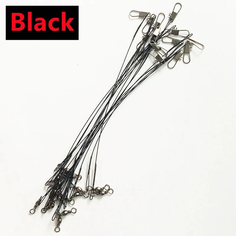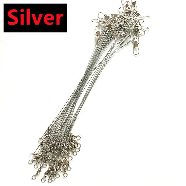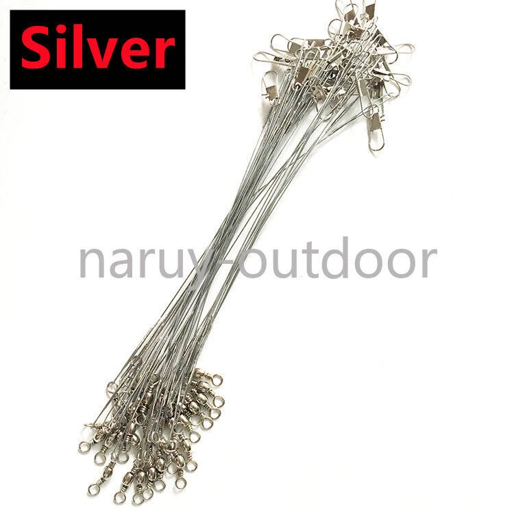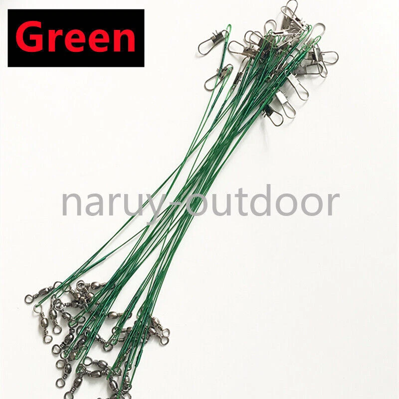 Features: 1)Fishing tackle leader: made of premium stainless steel, nylon-coated, to ensure these high-quality leaders are tough enough for sharp teeth, stronger. 2)Perfect fishing equipment leader, corrosion resistant, durable, and tough enough for fishes with sharp teeth, with swivel and clip, is easy to connect fishing lure, fishing bait, fishing hooks, weight set. great for use in both saltwater and freshwater. 3)Fishing accessories of steel leaders are great for toothy fish, such as pike, catfish, trout, crappie, striped, bass, eagle claw, northern pike. Details Color: green / black / silver Length: 10cm,15cm, 20cm, 25cm, 30cm Package: 100PCS Fishing Wire Leader Notice: 1.Due to the difference showing indifferent monitors, the picture may not reflect the actual color of the product. 2.Please allow 1-2CM error due to the manual measurement. Hope you can understand. Thank you!