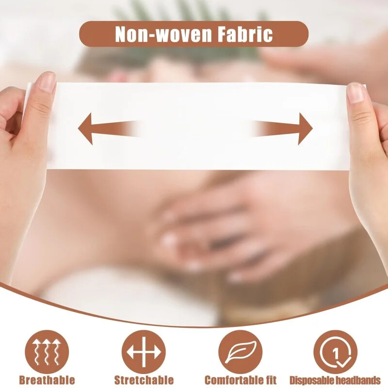 Specification: 100% new quality. Item Name:Disposable hair band Material:non-woven Color: As the picture shows Size:50cm/17.71in*6cm/2.36in Shelf life: 5 years Package includes: 100pcs