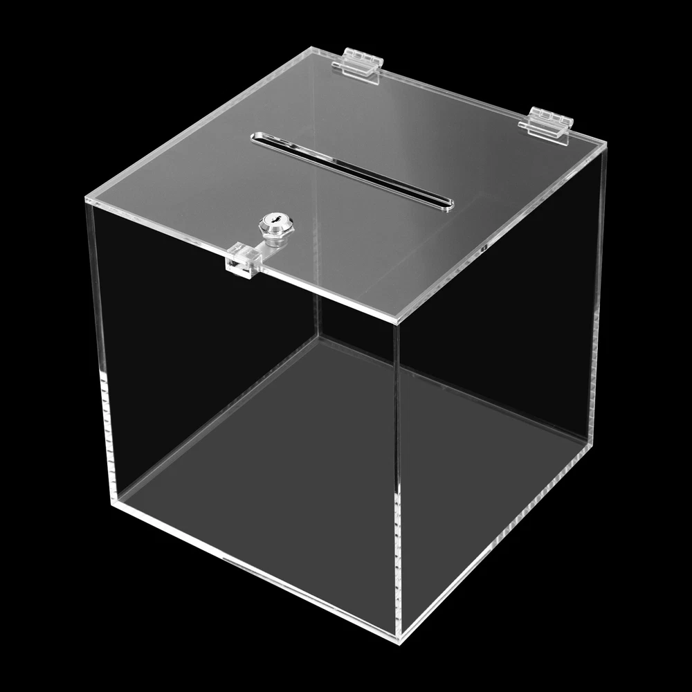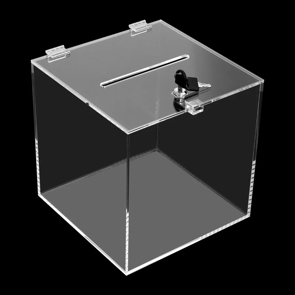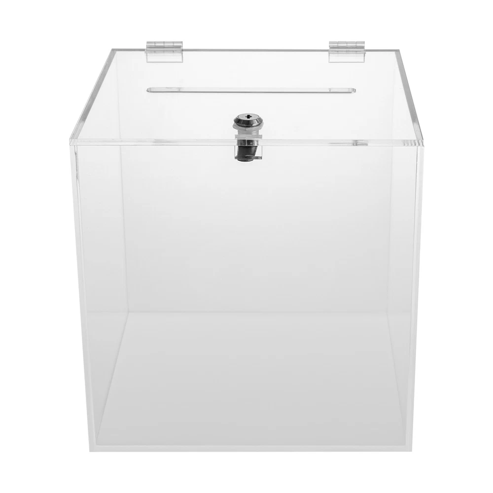 Specifications Color: Clear Material: Acrylic Process: Laser Cutting Shape: Square Style: Modern Assembly Required: No Mounting Type: Free Standing, Tabletop Load Capacity: 2kg/4.41 lbs Number of Keys: 2 Thickness: 3mm/0.12in Product Inner Size: 25.1*25.1*25.1cm/9.88*9.88*9.88in Top Slot Size: 0.8*12cm/0.31*4.72in Product Size: 25.4*25.4*25.4cm/10*10*10in Package Size: 30*30*30cm/11.81*11.81*11.81in Gross Weight: 3kg/6.61lbs Net Weight: 2.5kg/5.51lbs Package Included 1* Acrylic Donation Box 2* Keys 10*10in Acrylic Donation Box, Money Storage Container, Suggestion Box with Lock Welcome~ Description This donation box combines function and fashion. Not only does it have a stylish design, but also it has a great deal of versatility and can be used for events such as voting, fundraising, elections, and so on. This acrylic donation box is sturdy and durable and comes with a lock and two keys to ensure security. Come and buy it. Key Features Sturdy and Durable: It is made of acrylic and adopts a laser cutting process, which has high toughness and wear resistance . It is not easy to break and deform, so you can use it for a long time. Clear Design: The clear box allows everyone to observe the changes inside, ensuring that the event is conducted fairly and openly. Safe to Use: This product is equipped with a security lock, which not only protects privacy but also ensures the safety of the items in it. Easy to Clean: The simple construction and smooth surface makes it easy to clean and you just need to wipe it with a damp cloth (not included). Ready to Use: You can use this product directly after receiving it without additional installation, which saves you time and energy. Large Capacity: With a strong load-bearing capacity (4.41 lbs) and a large interior size ( 9.88*9.88*9.88 inches ) , you can feel free to put letters, cards, money, and so on into it. Compact & Portable: Its lightweight (5.51 lbs) and compact size (10*10*10in) allow it to be placed on the tabletop without taking up too much space and can be carried and stored with less effort. Thoughtful Design: The top slot with a suitable size (0.31*4.72in) is convenient for you to put in letters or cards. Protective Packaging: To prevent the product from being damaged during transportation, we packed it with bubble bags to protect your products to the maximum extent possible. Details Fully Openable Lid: The top lid can be opened fully to take out the items from the box easily. 2 Keys: The two keys make it easy for you to use one of them as a spare in case you lose it. Application This product can be used for fundraising, voting, collecting suggestions, feedback, complaint letters, and so on, as well as for storing money, postcards, cards, and so on. It can be widely used at home, office, school, shopping mall, weddings, and other occasions or places. Specifications Color: Clear Material: Acrylic Process: Laser Cutting Shape: Square Style: Modern Assembly Required: No Mounting Type: Free Standing, Tabletop Load Capacity: 2kg/4.41 lbs Number of Keys: 2 Thickness: 3mm/0.12in Product Inner Size: 25.1*25.1*25.1cm/9.88*9.88*9.88in Top Slot Size: 0.8*12cm/0.31*4.72in Product Size: 25.4*25.4*25.4cm/10*10*10in Package Size: 30*30*30cm/11.81*11.81*11.81in Gross Weight: 3kg/6.61lbs Net Weight: 2.5kg/5.51lbs Package Included 1* Acrylic Donation Box 2* Keys Notes Please confirm the dimensions before purchasing. Please note this product does not include any cards, letters, or money. Please allow the slight color difference caused by the shooting light and 1-3 cm error due to manual measurement, and make sure you do not mind before ordering. tu1 Payment Delivery details Terms of sales About us Contact us Payment We accept ebay payment 。 Fees such as import duties, taxes are not included in the item price or shipping costs. These charges are the buyer's responsibility. Delivery details Shipping: 2-9 working days to: USA Terms of sales We maintain high standards of excellence and strive for hundred percent customer satisfaction. Feedback is very important to us. We hope that you contact us immediately before you give neutral or negative feedback, so that we can address your concerns. It is impossible to address issues if we do not know about them! About us Your satis faction is our ultimate goal. We work hard to earn your trust and future business. Our certified technicians have tested each item before shipping. The unit comes with 1 year limited warranty on all manufacturing defects. a) If you receive a defective item, you may return it or ask for a discount. Please contact us within 14 days after you receive the package. b) What you returned must be intact and in its original packaging as re? u. Customer is responsible for shipping costs of the returned item. c) We will cover the cost of shipping back t with the shipping rate indicated in the registration page. We will send you a new unit or refund the full payment you paid. Thank you. Contact us Business Hour Business Hour: Monday To Friday: 8:30 AM to 5:00 PM (Beijing China time) Due to time zones, our reply to your questions may not be immediately. But within above working time, we will reply your email within 24 hours. If it's non-workdays, please kindly be patient and wait till Monday. Please contact us with ebay message. Please feel free to contact us if you have any questions. Monday To Friday: 8:30 AM to 5:00 PM (Beijing China time) Due to time zones, our reply to your questions may not be immediately. But within above working time, we will reply your email within 24 hours. If it's non-workdays, please kindly be patient and wait till Monday. Please contact us with ebay message. Please feel free to contact us if you have any questions.