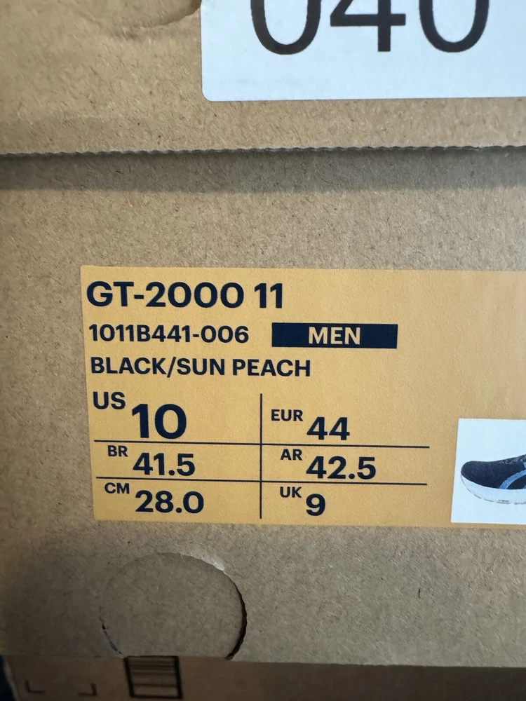1011B441 ASICS Men's GT-2000 11 Running Shoes BLACK/SUN PEACH SIZE 10 Worn Once!