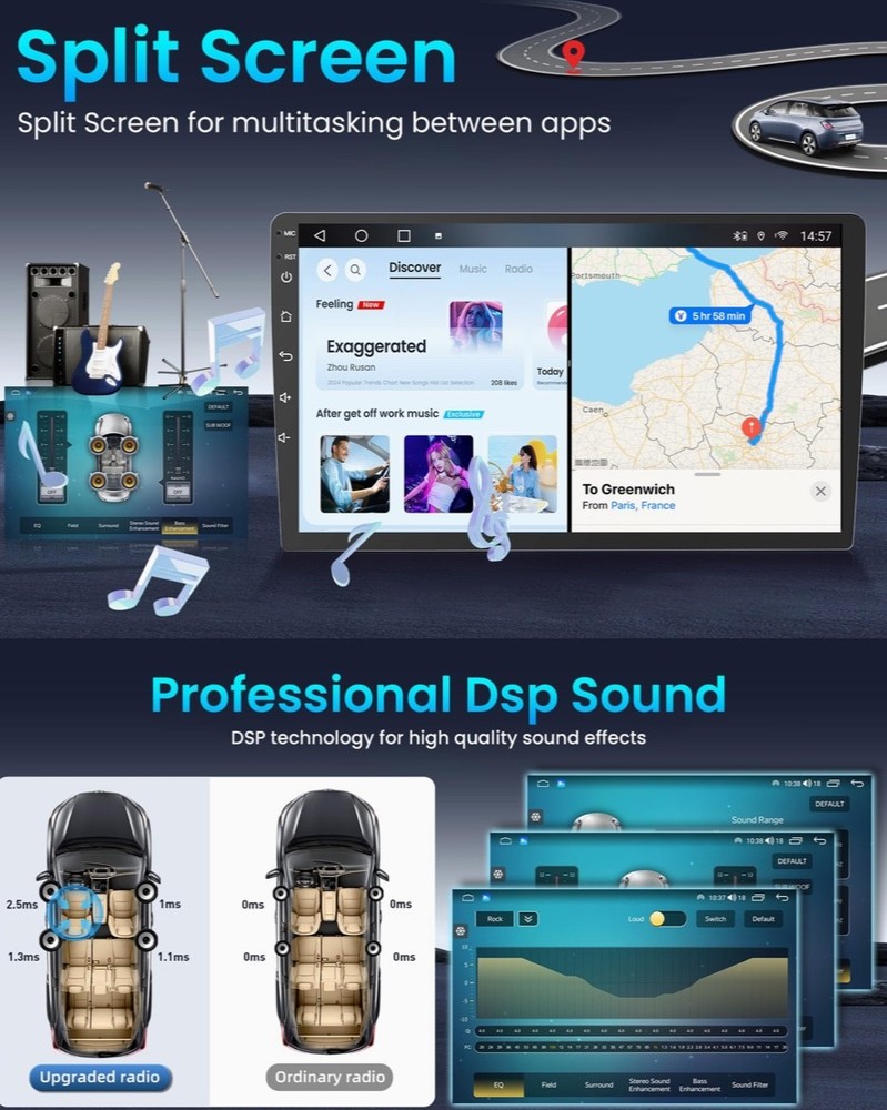 #3061 [8 Core + 32GB] Car Radio for Toyota Tundra 2007-2013: 10.2 Inch HD Touchscreen Toyota Stereo Support Wireless Carplay Android Auto Bluetooth 5G Wi-Fi FM GPS SWC DSP Mirror Link Backup Camera Brand Jufodrca Vehicle Service Type Toyota Tundra Screen Size 10.2 Inches Map Type North America, Worldwide Operating System Android Memory Storage Capacity 32 GB 【Vehicle Fit & Plug-and-Play Upgrade】 Designed specifically for Toyota Tundra 2007–2013, this 10.2-inch radio stereo replacement offers true plug-and-play installation with all required harnesses included—no cutting or rewiring needed. Fully supports factory steering wheel controls, JBL amplifier, reverse camera, parking radar, A/C information, TPMS display, and OEM USB port, delivering a seamless OEM-style upgrade that fits perfectly and refreshes your interior. 【Wireless CarPlay & Android Auto】 This Toyota Tundra radio upgrade supports wireless CarPlay and wireless Android Auto, as well as wired USB connection. Enjoy fast, stable connection in about 1 second for navigation, music, calls, and apps directly on the touchscreen. Mirror your phone interface smoothly and access apps hands-free, making daily driving safer and more convenient. 【Android 13 System & Stable Performance】 Powered by Android 13, this car stereo features an 8-core processor with 2GB RAM + 32GB ROM, ensuring smooth operation and responsive performance for everyday use. Built-in WiFi hotspot support allows easy access to online navigation apps, streaming, and downloads from the Play Store. Supports Bluetooth 5.0, SWC, mirror link, FM, RDS, and DSP. 【DSP Audio & AM/FM Radio】 Equipped with DSP sound processing, 36-band EQ, and RDS, this Toyota Tundra head unit enhances audio clarity and balance for a richer listening experience. The high-quality AM/FM radio tuner delivers stable signal reception, so you can enjoy music, talk shows, and local stations with consistent sound quality on every drive. 【Built-in GPS Navigation & Steering Wheel Control】 The integrated GPS module supports both online and offline navigation, providing accurate and reliable route guidance wherever you drive. Full steering wheel control compatibility lets you adjust volume, change tracks, and answer calls without taking your hands off the wheel, improving driving safety and control. 【HD Rear View Camera Support】 Includes a 1080P night vision rear camera with IP67 waterproof rating and automatic fill light for dark environments. When shifting into reverse, the radio instantly displays the camera view with clear distance guidelines, helping you park and maneuver safely in tight spaces or low-light conditions. 【Complete Package & After-Sales Support】 The package includes a free HD rear camera and external microphone. If you have any questions about installation, wiring, setup, or daily use, our professional technical support team is ready to help. We provide responsive after-sales service with replies typically within 24 hours, ensuring a worry-free upgrade experience.