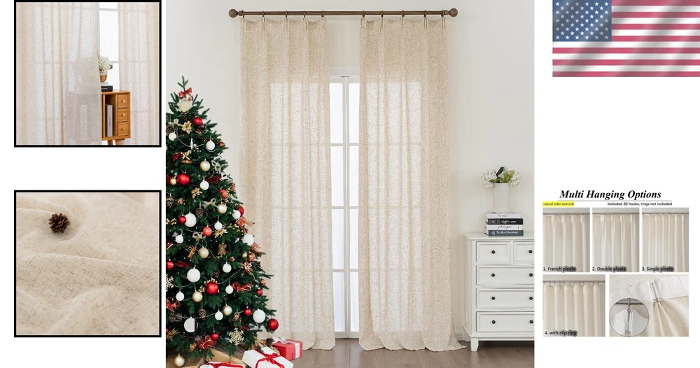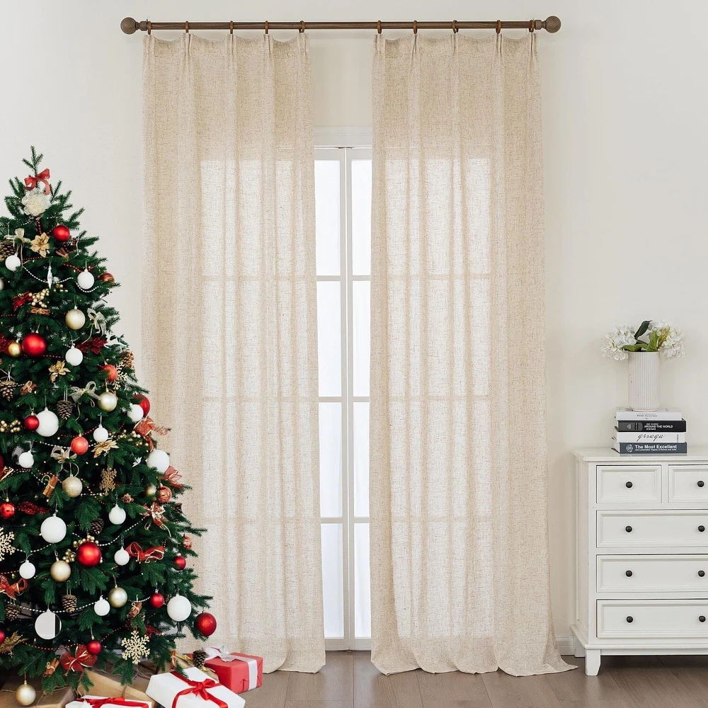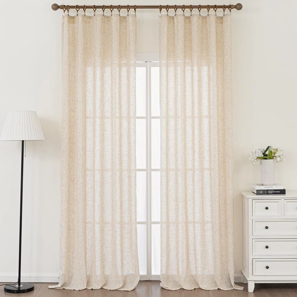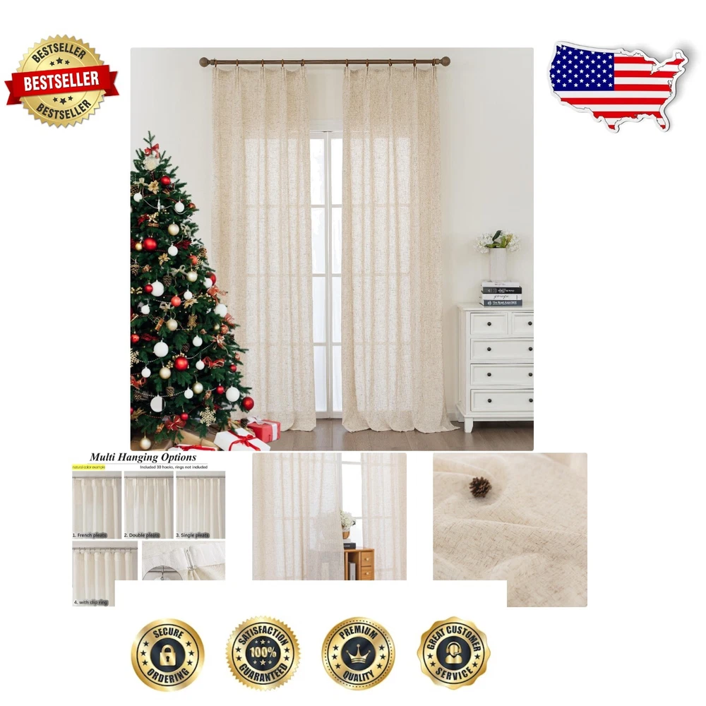 Color: Beige Item Weight: Medium Room: Living Room Department: Unisex Baby & Toddler, Adults, Kids, Teens Size: 102 x 50 in Adjustability: DIY Pleating Included Components: Hook, Tie Back Style: Rustic Specific Uses For Product: Privacy, Sun Protection, Decorative Item Dimensions L X W: 102"l X 50"w gtin13: Does not apply Type: Set Smart Home Protocol: None Fabric Type: Faux Linen Recommended Uses For Product: Indoor Mounting: Back Tab Material Type: Fabric Number Of Items: 2 Seasons: All Season Brand: Unbranded Lining Description: Unlined Curtain Heading: Pinch Pleat Curtain Form: Sheer Curtain Product Care Instructions: Machine Wash, Do Not Bleach Features: Lined, Lightweight, Sturdy, Machine Washable, Wrinkle Free, Adjustable, Breathable, DIY Pleat, Semi Sheer Care Instructions: Machine Wash, Do Not Bleach Curtain Hanging Method: Back Tab Occasion Type: Christmas Material: Polyester Blend Item Package Weight: 1.82 Kilograms Pattern: Solid UPC: Does not apply Transparency: Semi-Sheer Curtain Pleat: Versatile Water Resistance Level: Not Water Resistant Weave Type: Plain Personalize: No Opacity: Semi-sheer Compatible Window Type: Any Window Type Smart Home Compatibility: None