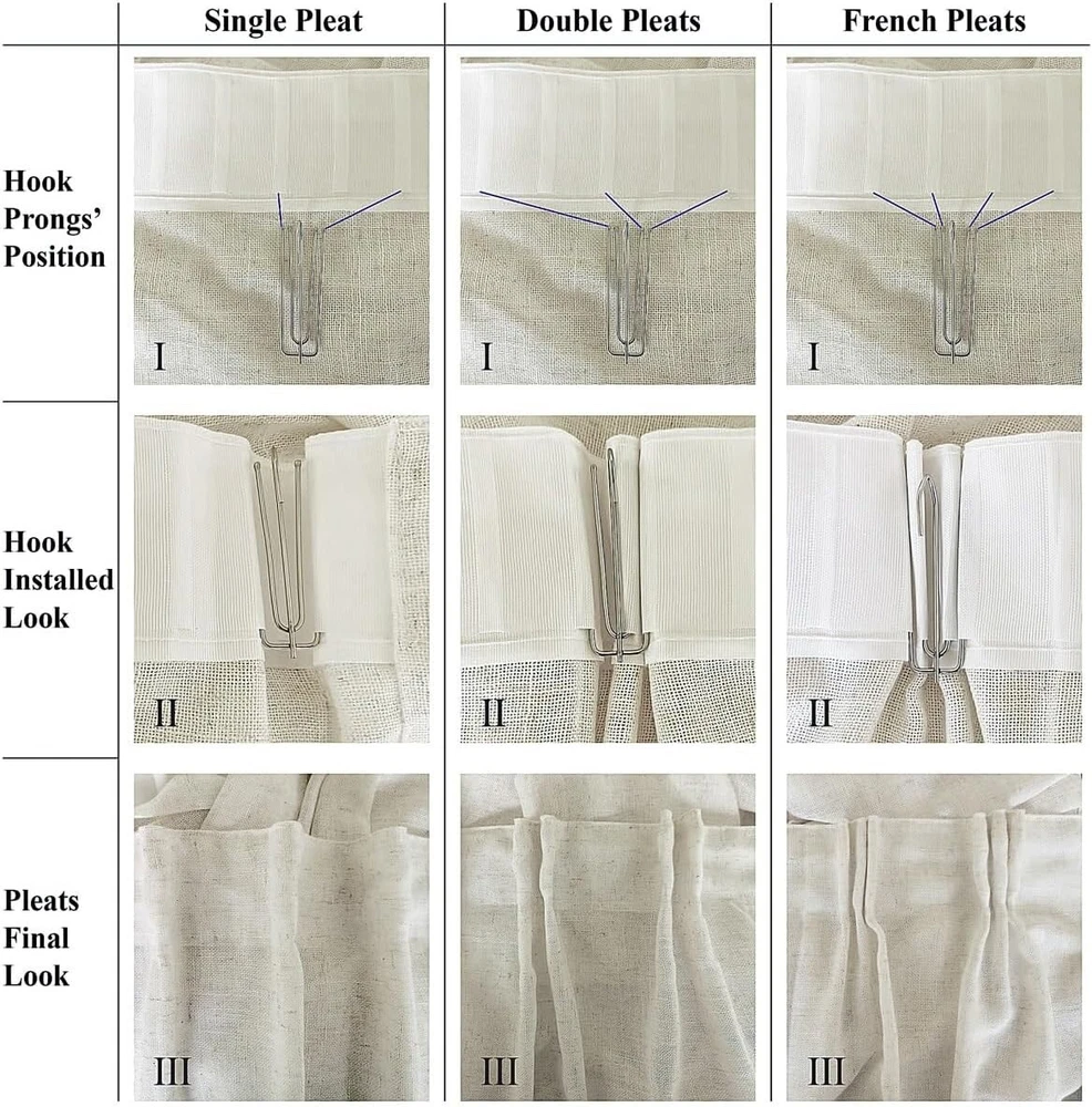 102 Inch Faux Linen Pinch Pleat Curtains with Hooks - 2 Panel Set for Elegance