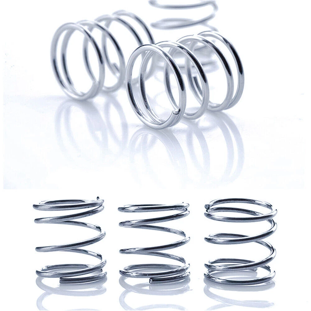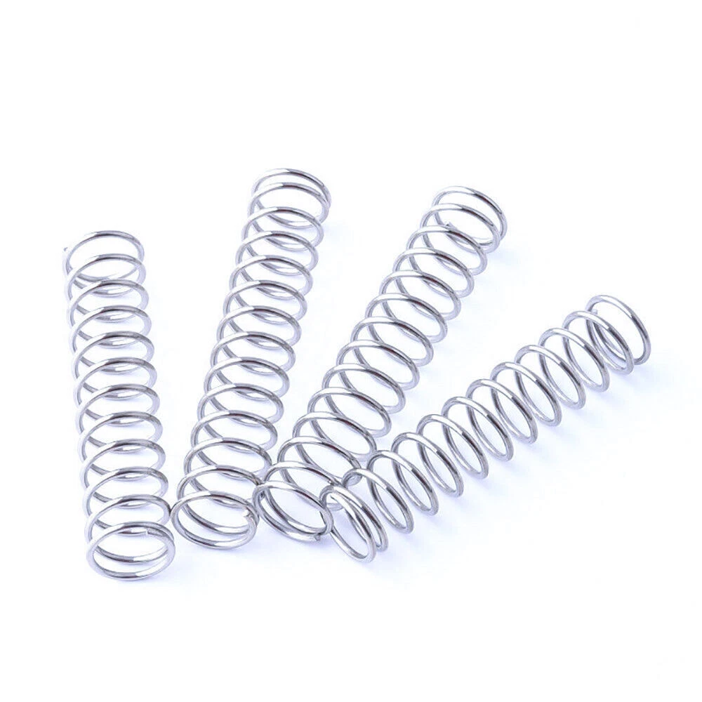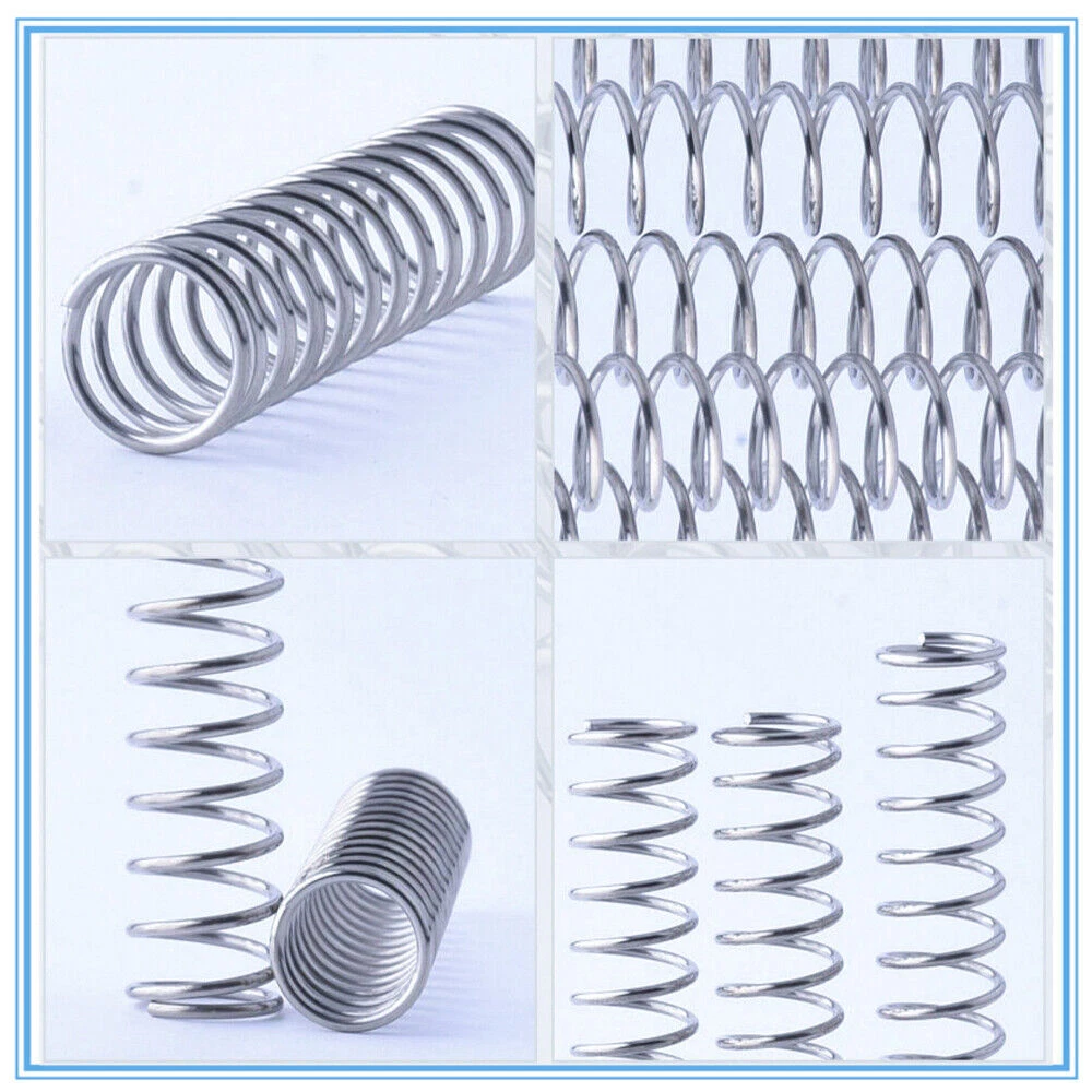 Product description Specifications: 【Features】- Springs occupy an important position in various markets. Stainless steel spiral compression spring, waterproof, rust-proof, durable. 【Application】- Widely used in shipbuilding, computer, electronics, automobile, chemical industry, aerospace, railway, wind power, thermal power, construction machinery, mining machinery, construction machinery, elevators and other fields. Wire diameter:1.2mm Diameter:10 - 20mm Length:60 - 100mm Material:Spring Stee Surface Treatment:Galvanize