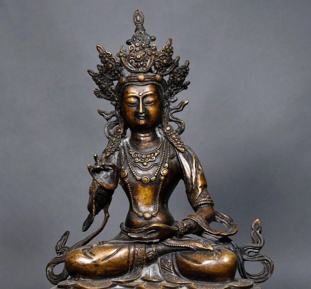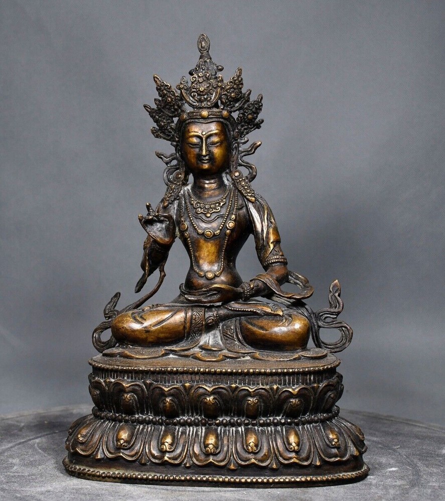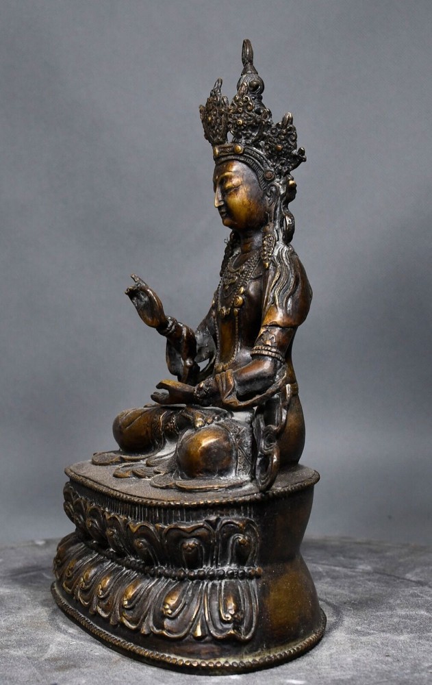 10.2-inch Antique Tibetan Buddhism Bronze White Tara Bodhisattva Temple Statue