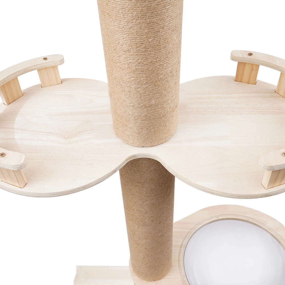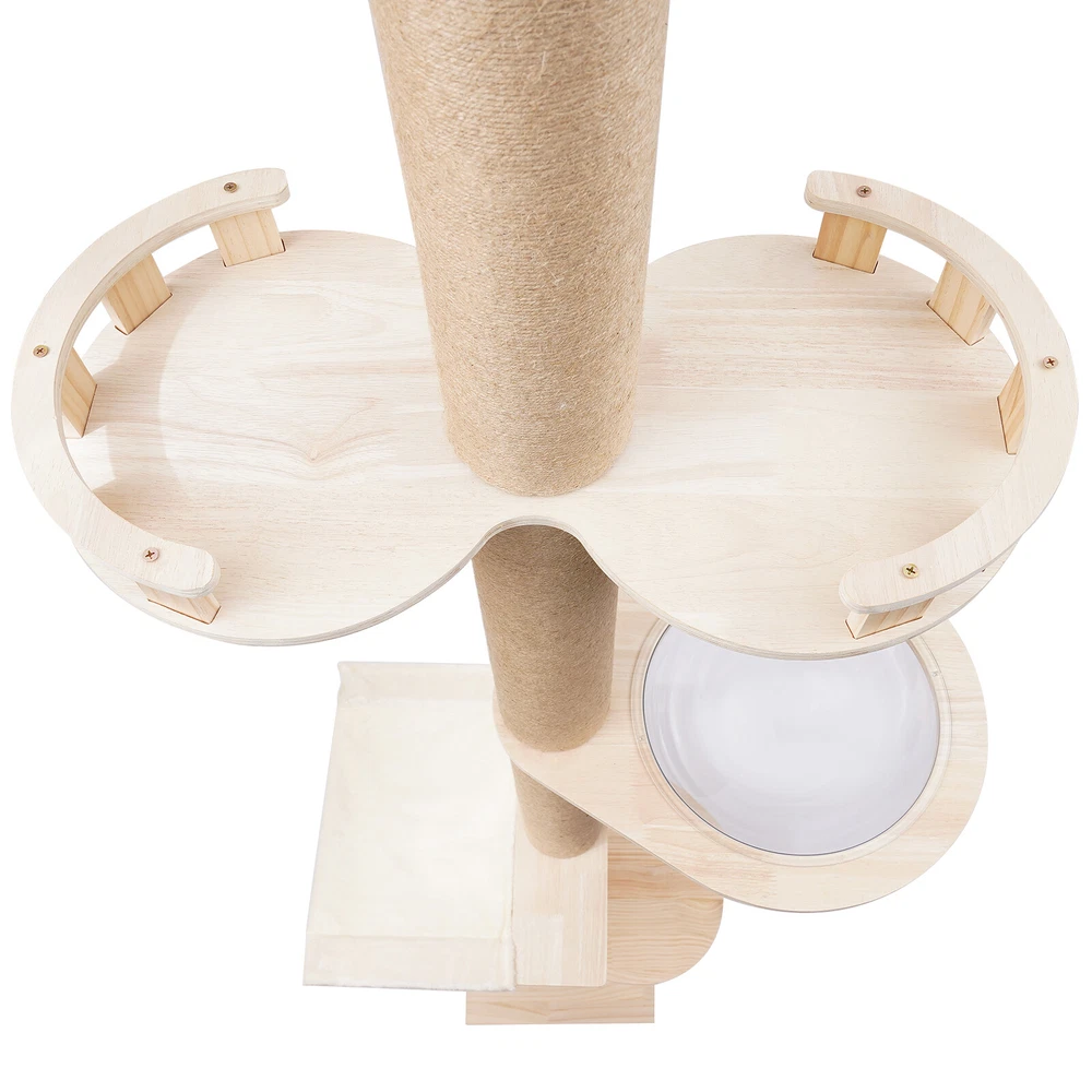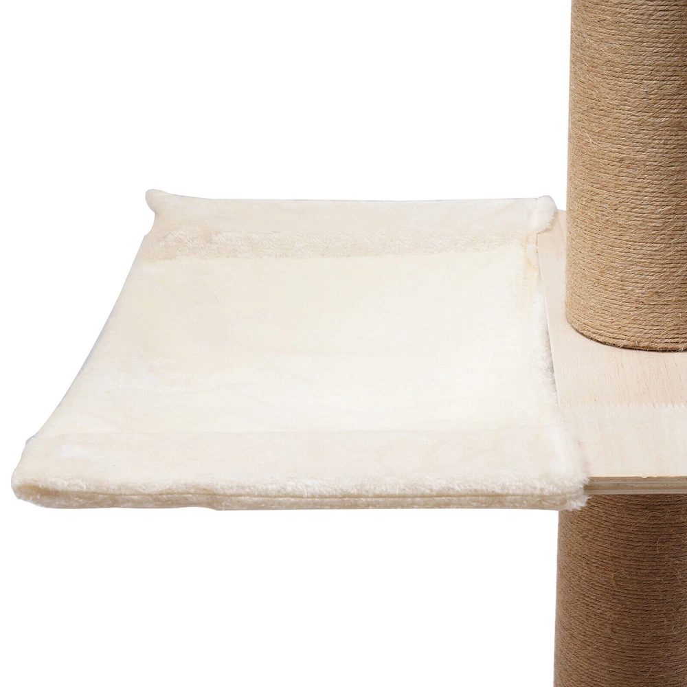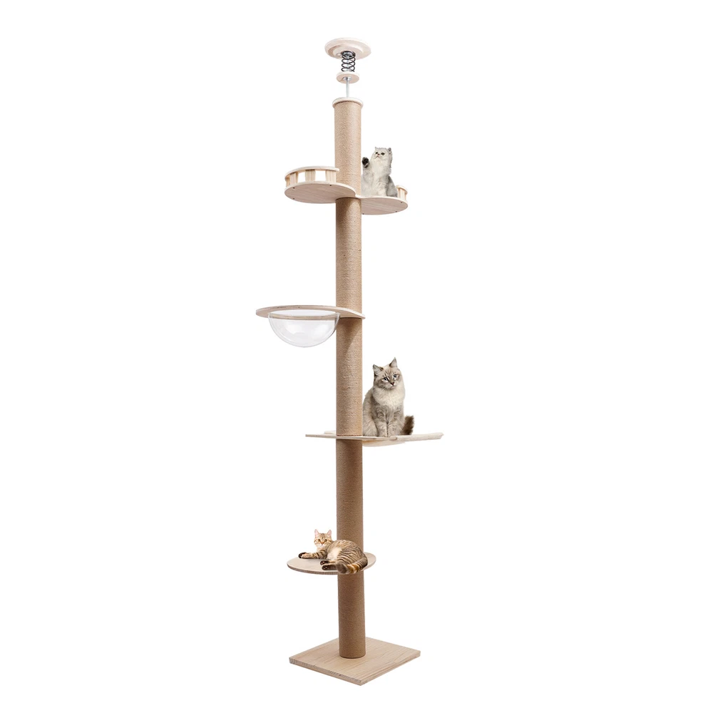 Cat Tree 104" Cat Climbing Tower for Indoor w/Natural Sisal Rope Scratching Post Floor-to-Ceiling Cat Tree Cat Climbing Tower with Natural Sisal Rope Scratching Post, (Adjustable Height:100.4inch-104.3inch) Description Buy a cat tree for your cat, and give it a home paradise to play in. This cat tree includes a springboard, space capsule, U-shaped hammock, and a double watchtower, which is a fabulous play truck for your cat to climb, scratch, sleep, and play. It uses MDF , paper tubes, and hemp ropes as material, making this cat tree safe, durable, and environmental-friendly . Its height is adjustable from 100.4-104.3". You can send it to a cat lover at various festivals. Key Features Premium Material: This cat tree is made of MDF , paper tubes, and hemp ropes without paint, making it strong, long-lasting, environmental-friendly , and safe for your cat. Adjustable&Proper Height: The tension rod with a spring on the top makes this cat tree be adjusted from 100.4-104.3" to accommodate the room ceiling. Its proper height (max. 104.3" ) arouses cats' curiosity a nd allows them to better enjoy the scenery above, thus relieving the pressure on the cat and people. Sturdy Construction: Large-diameter columns(4.5"), MDF and square bottom plates add firmness to the structure of this cat tree, making its load-bearing capacity reach 33 lbs, which is suitable for most cats. Family Playground : With a springboard, space capsule, U-shaped hammock, and double watchtower in a cross distribution, this cat tree is a home paradise for your cat to play, snap, climb, and so on. Considerate Design: All posts are covered with hemp ropes, making it good for cats to form a good habit of scratching without damaging your expensive furniture. Modern Appearance: The light-colored wood, round&square shape, and smooth surface make this cat tree attractive, fit any room decor, and add beauty to your home. DIY Combination: You can freely change the places of the springboard, space capsule, U-shaped hammock, and double watchtower to suit your cat's habits. Easy to Assemble : You can easily assemble the cat tree without drilling holes in the ceiling. And there is a Chinese&English diagram for your reference. Ideal Gift: Thanks to its exquisite design and modern appearance, you can choose this cat tree as a gift for people around you who have a cat on Thanksgiving Day, Christmas, etc. Easy to Store&Space-saving: You can disassemble it for easy storage. It takes up mostly vertical space and occupies only a 15.7*15.7inch base on the floor, so you can settle it to any spot you’d like to. Easy to Clean: Because of the smooth surface, you can wipe the dirt from this product with a wet cloth. Details Round Edges : All boards with fine grinding treatment have round edges that prevent your cat from scratching. Clear Space Capsule: The clear space capsule allows you to view the cat's status when it is sleeping in it. Soft U-shaped Hammock: The soft U-shaped hammock allows your cats to rest, perch, and take a nap on the plush platforms if tired and provides them with deep quality sleep. Application It is suitable for all kinds of cats to jump, scratch, sleep, climb, play, etc. The cat should be lighter than 33 lbs. And you can place this cat tree in your living room, bathroom, balcony, playroom, study room, and so on. Specifications Color: Light Brown Material: MDF , Hemp Rope, Paper Tube Process: Grinding Style: Adjustable Target Species: Cat Uses: Indoor Mounting Type: Free-standing Number of Tiers: 4 Assembly Required: Yes Weight Capacity: About 15kg/33lbs Posts Diameter: 11.5cm/4.5inch Baseboard Size(L*W): 40*40cm/15.7*15.7inch Springboard Size(L*W): 40*35cm/15.7*13.8inch U-shaped Hammock Size(L*W): 45*40cm/17.7*15.7inch Space Capsule Size: 49*40*30cm/19.3*15.7*11.8inch Double Watchtower Size(L*W): 60*30cm/23.6*11.8inch Adjustable Height: 255-265cm/100.4-104.3inch Package Included 1* Cat Tree 1* Chinese&English Installation Diagram All Accessories for Assembly Notes This type is fit for a ceiling height of 100.4-104.3" . Please confirm the ceiling height before purchase. Selecting the right height for the product can ensure its stability, otherwise, it will cause the cat tree to be unstable. It is recommended for cats lighter than 33 lbs. You can place the cat tree somewhere away from your furniture so that there will be fewer scratches added to your furniture. You can prepare a soft pad under the baseboard to prevent it from scratching the floor. A small number of cats may not like to be close to or adapt to the product when they first come into contact with it. After half a month to a month of adaptation, they will like it. If you have several big fat cats, you can buy two sets and install them together. Considering cats' sharp claws, it is necessary to replace the post after using it for a long time. Please allow the slight color difference caused by the shooting light and 1-3cm error due to manual measurement, and make sure you do not mind before you order. Payment Delivery details Terms of sales About us Contact us Payment We accept ebay payment 。 Fees such as import duties, taxes are not included in the item price or shipping costs. These charges are the buyer's responsibility. Delivery details Shipping: 2-9 working days to: USA Terms of sales We maintain high standards of excellence and strive for hundred percent customer satisfaction. Feedback is very important to us. We hope that you contact us immediately before you give neutral or negative feedback, so that we can address your concerns. It is impossible to address issues if we do not know about them! About us Your satis faction is our ultimate goal. We work hard to earn your trust and future business. Our certified technicians have tested each item before shipping. The unit comes with 1 year limited warranty on all manufacturing defects. a) If you receive a defective item, you may return it or ask for a discount. Please contact us within 14 days after you receive t
