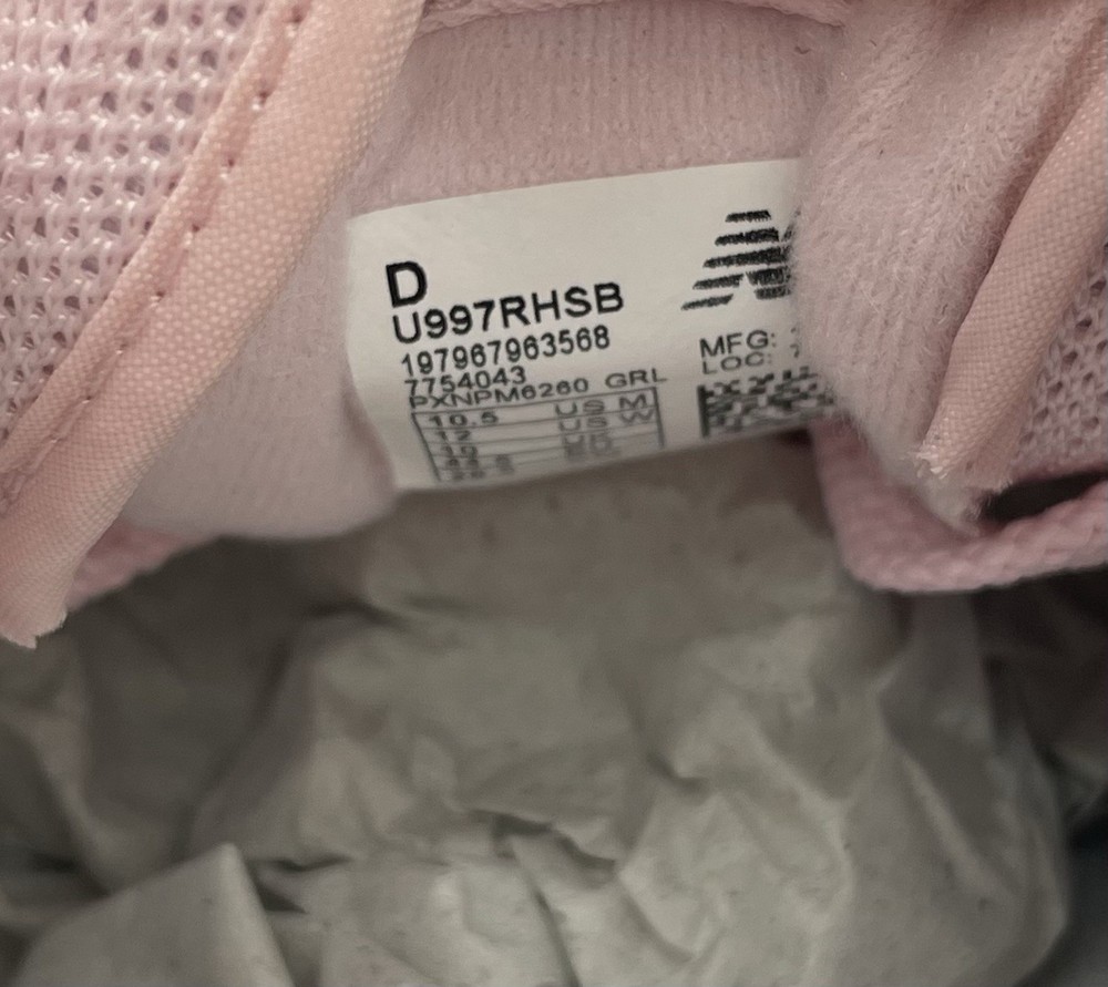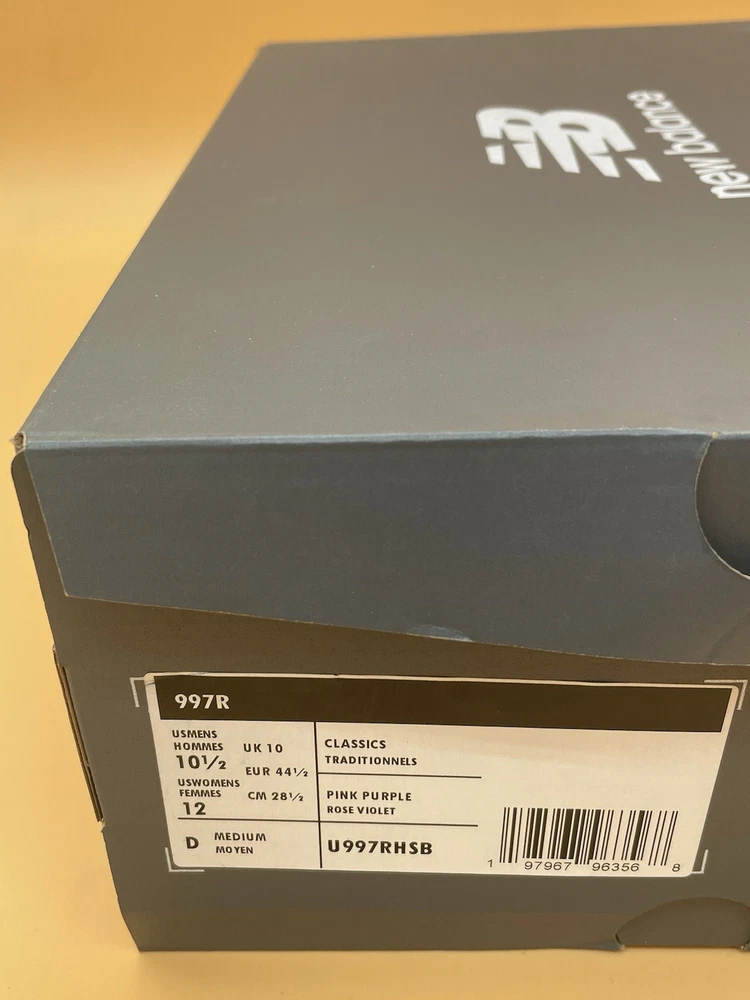 The product is a pair of New Balance 997R sneakers in size 10.5 for men or 12 for women. These lifestyle shoes feature a lace-up closure and a pink color with purple accents. Made with suede upper material, they are designed for athletic use and suitable for activewear or casual occasions. The sneakers belong to the New Balance Lifestyle product line and are ideal for wearing in the summer, fall, or spring seasons. UK 10 EU 44 1/2 Brand New with Box