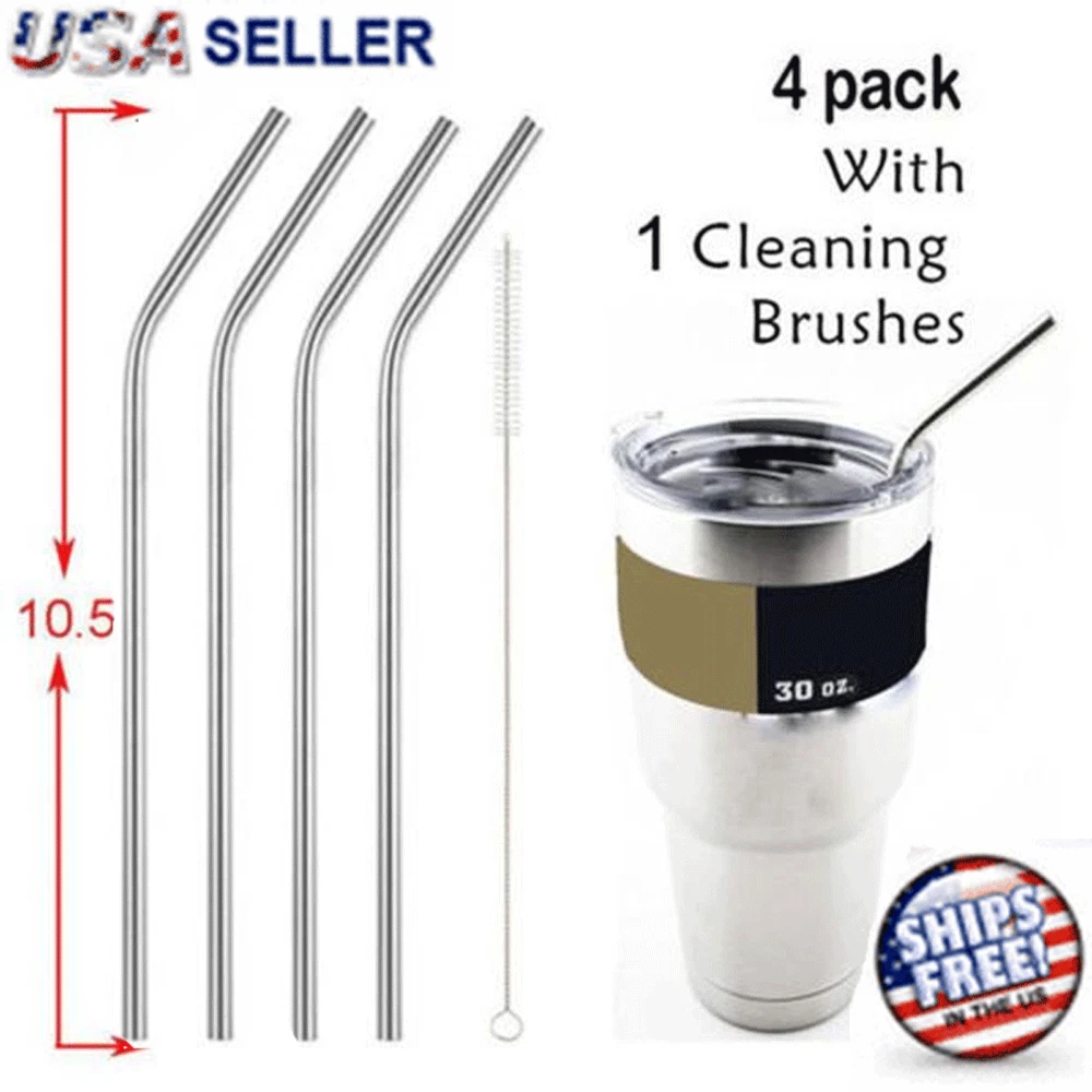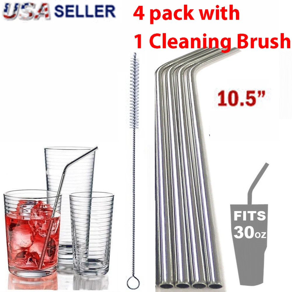 10.5" Long Reusable Stainless Steel Drinking Straws Metal for 30oz Tumblers Choose Set and Amount Above.. Perfect for Home use or to take with you on the go as Restaurants, and Theme Parks are starting to not carry or offer straws, and you do Not want to risk putting your mouth on restaurant cups, so play it safe and use the reusable straws that will last you.. Straws make it easier to enjoy your favorite drinks, but they're far from easy on the planet. All of that plastic waste that straws create ends up lingering in landfills for years, and having to buy straws again and again ends up wasting your money, too. Stainless Steel Drinking Straws are the solution to the problem and allow you to get all of the simple pleasures of drinking through a straw while saving money and leading a more sustainable life. Stainless Steel Drinking Straws are just like ordinary drinking straws in terms of their shape and size. Our straws measure 10 inches from end to end, and they have a slight bend at the top to make it easy to take a sip. But that's where the differences between our straws and those flimsy plastic ones end! Manufactured out of stainless steel, our drinking straws are ultra durable. They won't rust, crack or become scratched, and their ends won't end up crushed like a plastic straw's does. Best of all, you can use them again and again and again because they're so strong. Stainless Steel Drinking Straws are perfect for everyday use and for entertaining. The straws are completely nontoxic and free of BPA, so you can feel good about giving them to your friends and family to use. After you have enjoyed a drink with one of the straws, you can clean it up in no time. We give you One flexible wire brushes that fit perfectly inside to make it easy to give our straws a thorough scrub and get them ready for next time. Material: Straw: 304# food grade stainless steel Straw brush: stainless steel and plastic Size: Straw: diam 6 mm, length: about 25.5 cm / 10.5 inches Brush: 240 mm, about 9.5 inches Features: 1. High quality 304# food grade stainless steel, safe and secure. 2. Perfect round, will not hurt your mouth. 3. Texture design on hand height, effective anti-slip. 4. Clean easily, can use for many times Package: each piece packages with OPP bag choose your package above..