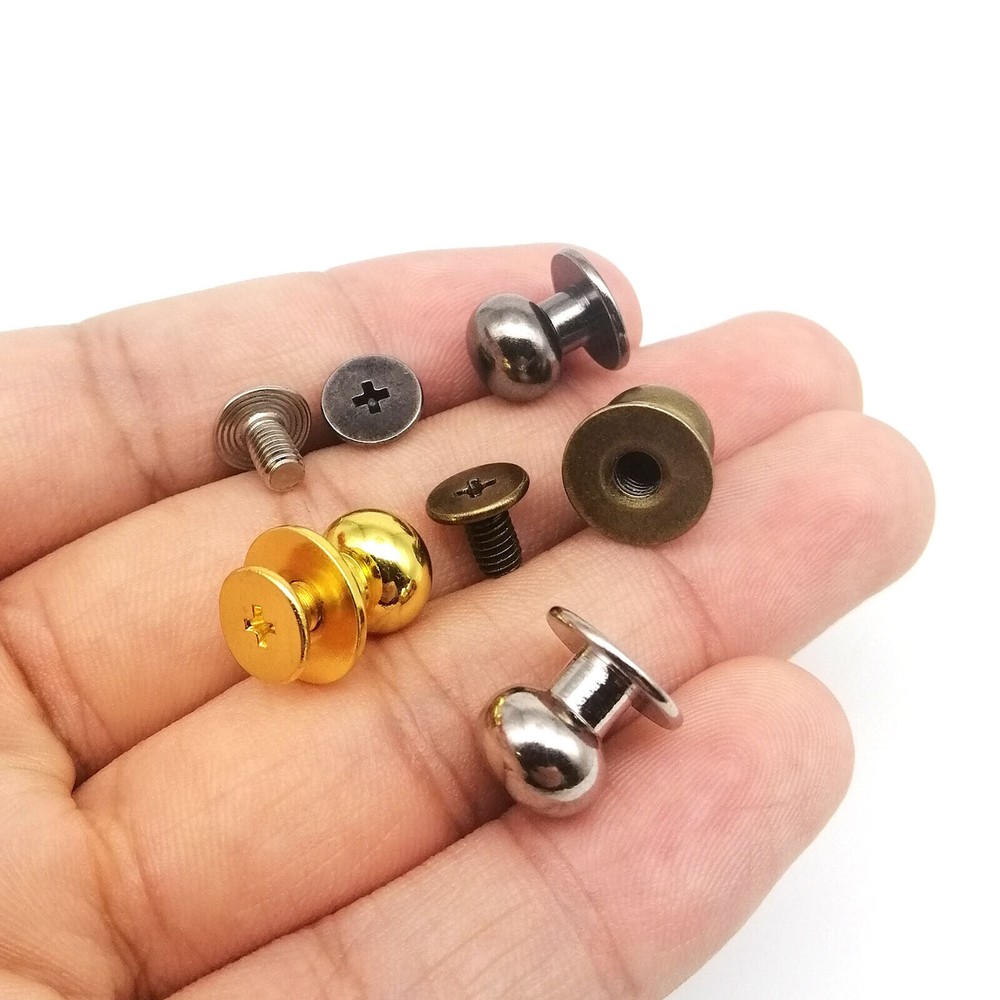 There are high quality round head screwback leather craft chicago screw Material: solid brass (top part) steel (bottom screw) Size: Head diameter 5mm: 5mm(head diameter)*7mm(bottom diameter)*8mm(high) Head diameter 6mm: 6mm(head diameter)*7mm(bottom diameter)*8mm(high) Head diameter 7mm: 7mm(head diameter)*9mm(bottom diameter)*9mm(high) Head diameter 8mm: 8mm(head diameter)*9mm(bottom diameter)*10mm(high) Head diameter 10mm: 10mm(head diameter)*12mm(bottom diameter)*13mm(high) On Feb 7, 2025 at 21:27:43 PST, seller added the following information: