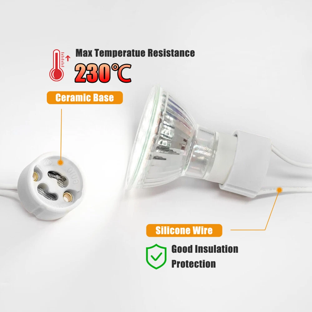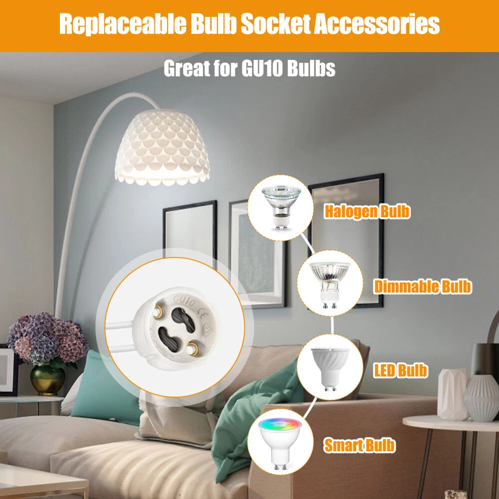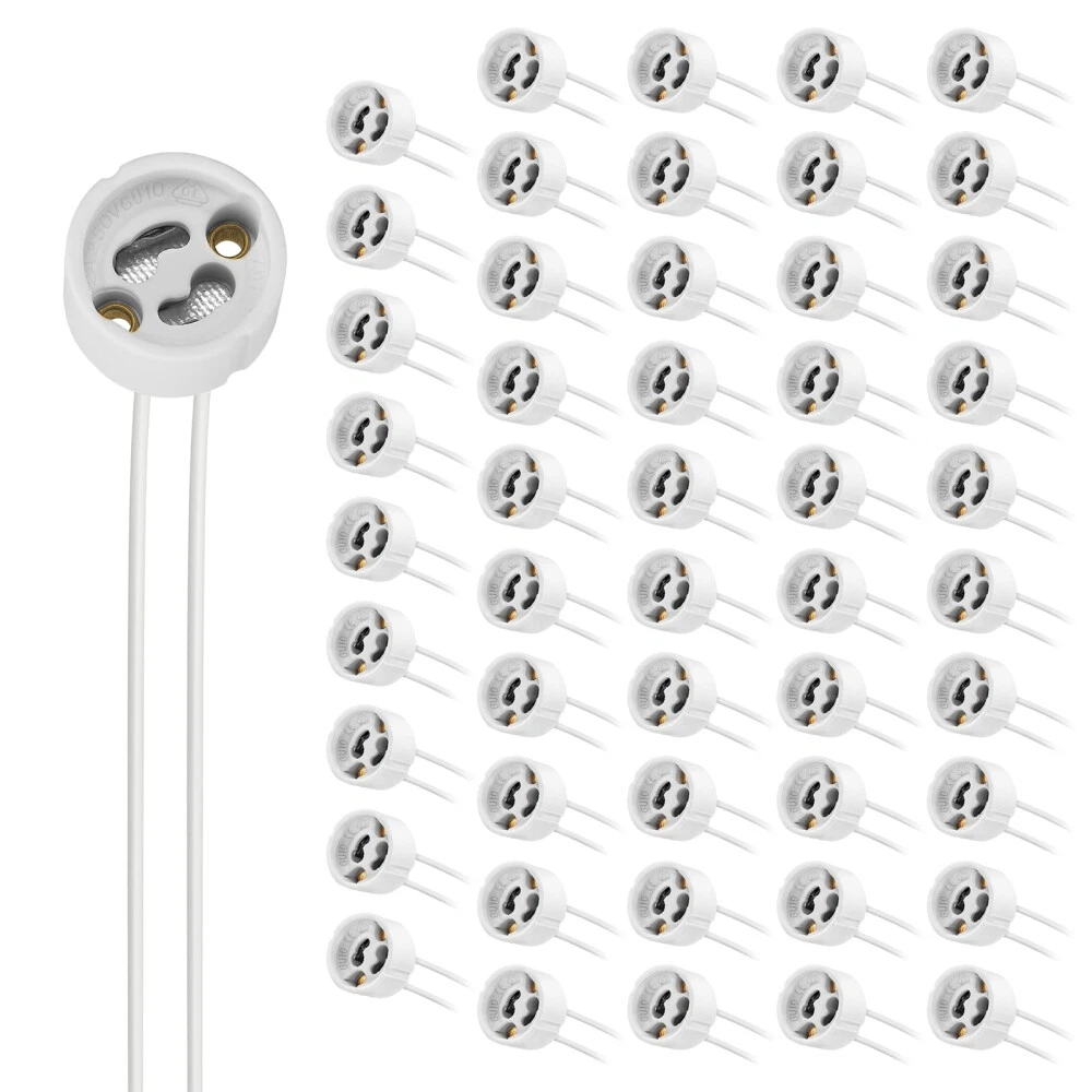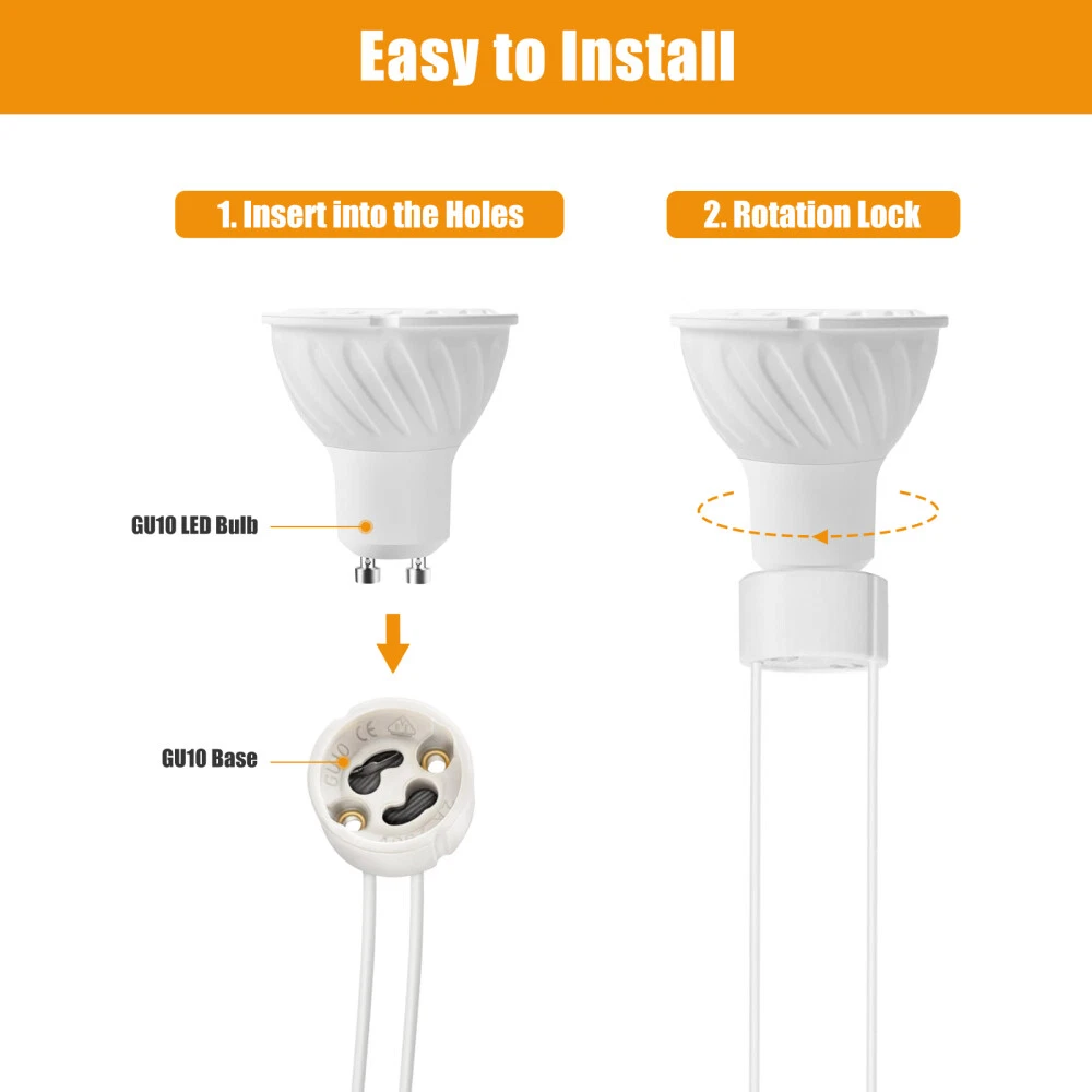 About this item : FOR ALL GU10 BASE BULBS: GU10 base socket is compatible with all types of bulbs as long as it is GU10 base. Parameters: Max wattage 300W, voltage range 110~250V, up to 230℃ heat resistance. Material: Ceramic base and silicone wire (CSA 0.75mm², length 5.9inch/150mm.) Easy to install: One-step installation. Insert the light bulbs into the holes in the center of the sockets, then turn and lock. The light bulbs are held firmly. Product parameters: Material: Ceramic + Silicone Wire Wiring length: 15cm Color: white Maximum wattage:0-300W Voltage range: 110~250V Socket Type: Pen Type Mounting Type: Wall Mount Package included: 10/20/50x GU10 lamp holders