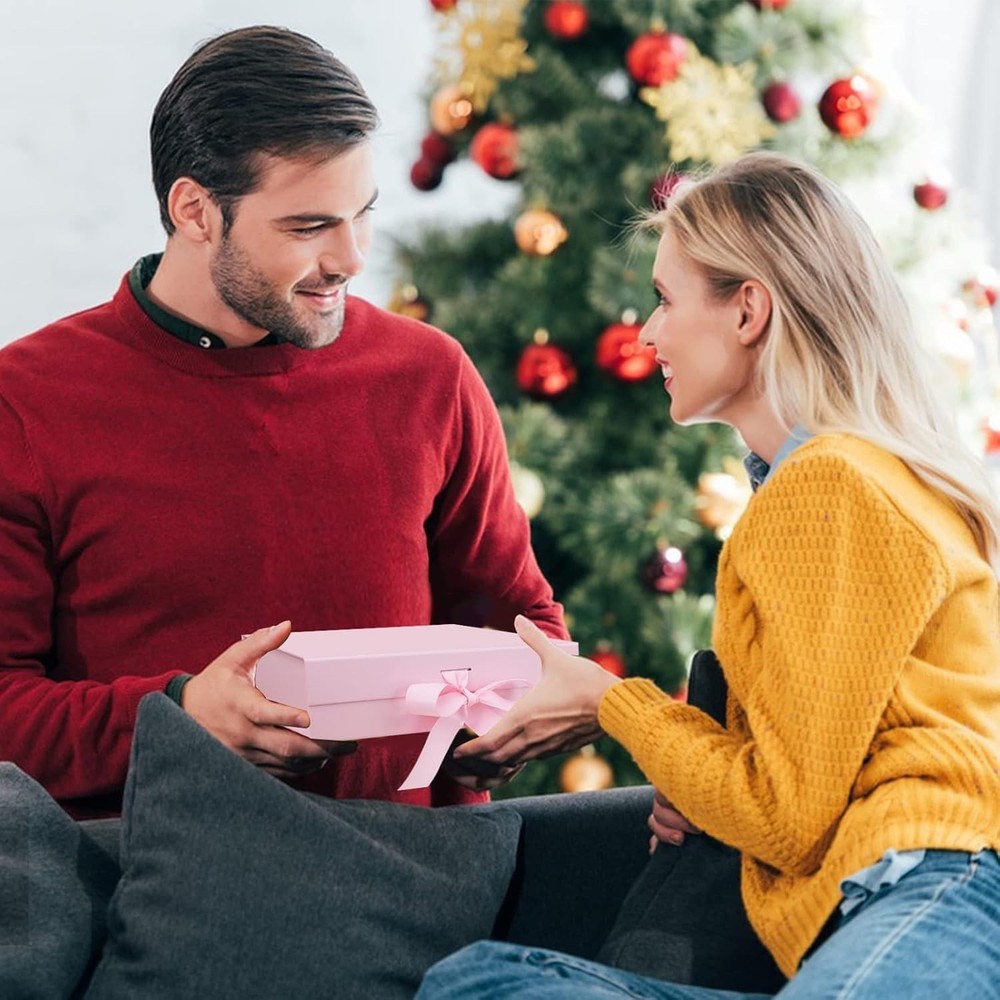 Dimension: 10.5"X7.5"X3.1" Magnetic Closure Design: Easy to open and close with concealed magnetic closure design, a satin ribbon attached for wrapping gift. Easy to assemble, just need 1-2 minutes. Sturdy & Reuseable: Made of high quality strength cardboard, durable and eco-friendly, can be used over and over again Occasion: Perfect for boys girls men women, suitable for Christmas, Wedding, Bridesmaid, Easter, Mothers Day, Fathers Day, Thanks Giving Day, Halloween, birthday, baby showers, graduations, housewarming and so on Widely used: Our gift boxes can hold toys, chocolate, watch, clothes, jewelry, perfume, cups etc. It is an ideal gift box for showing gifts perfectly.